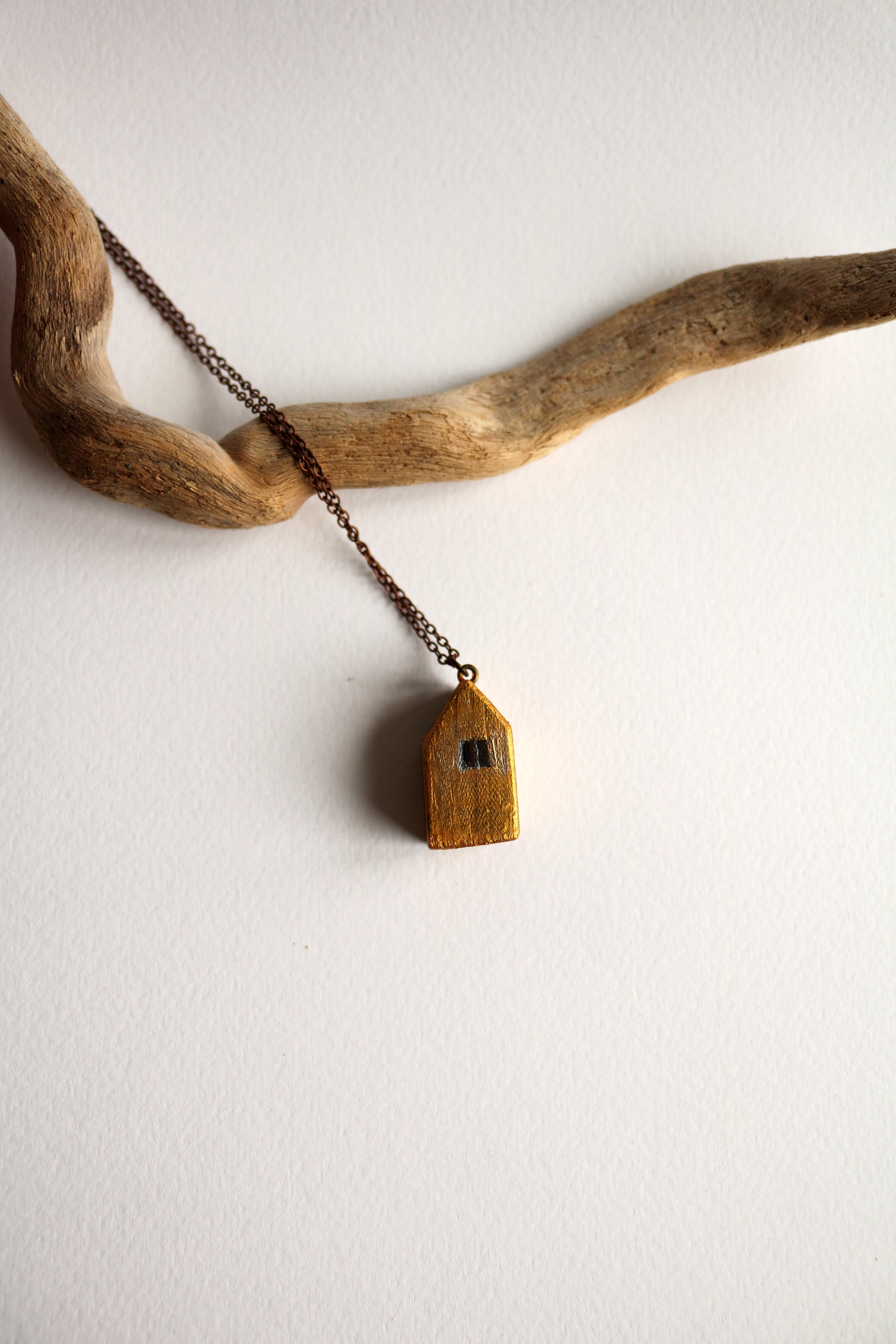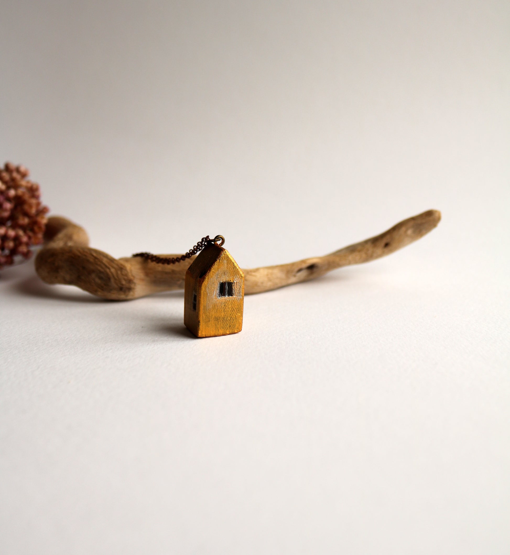 Очарователен гердан с дървена къщичка, изрисувана ръчно от талантливата Милена Неделчева. Къщичката грее в златен цвят, с красиви малки прозорци. Всеки щрих носи топлина и вълшебство.