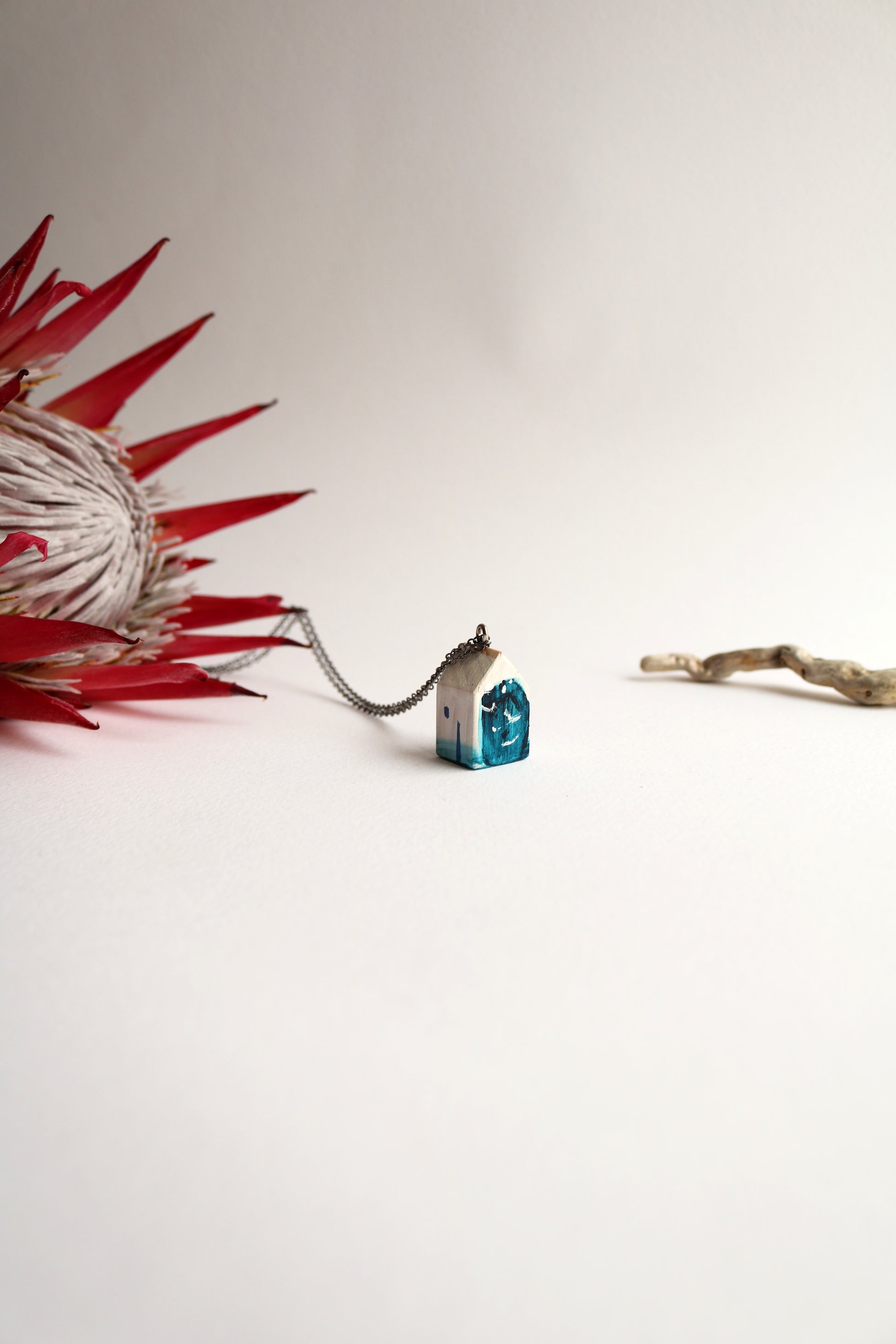 Любима, нежна и красива. Ръчно изработен и изрисуван гердан във формата на къща. Талантливата Милена Неделчева създава не просто бижу, а истинско усещане и изкуство. Уникален и единствен, този гердан е истинско вълшебство. Верижка с дължина около 40см.
