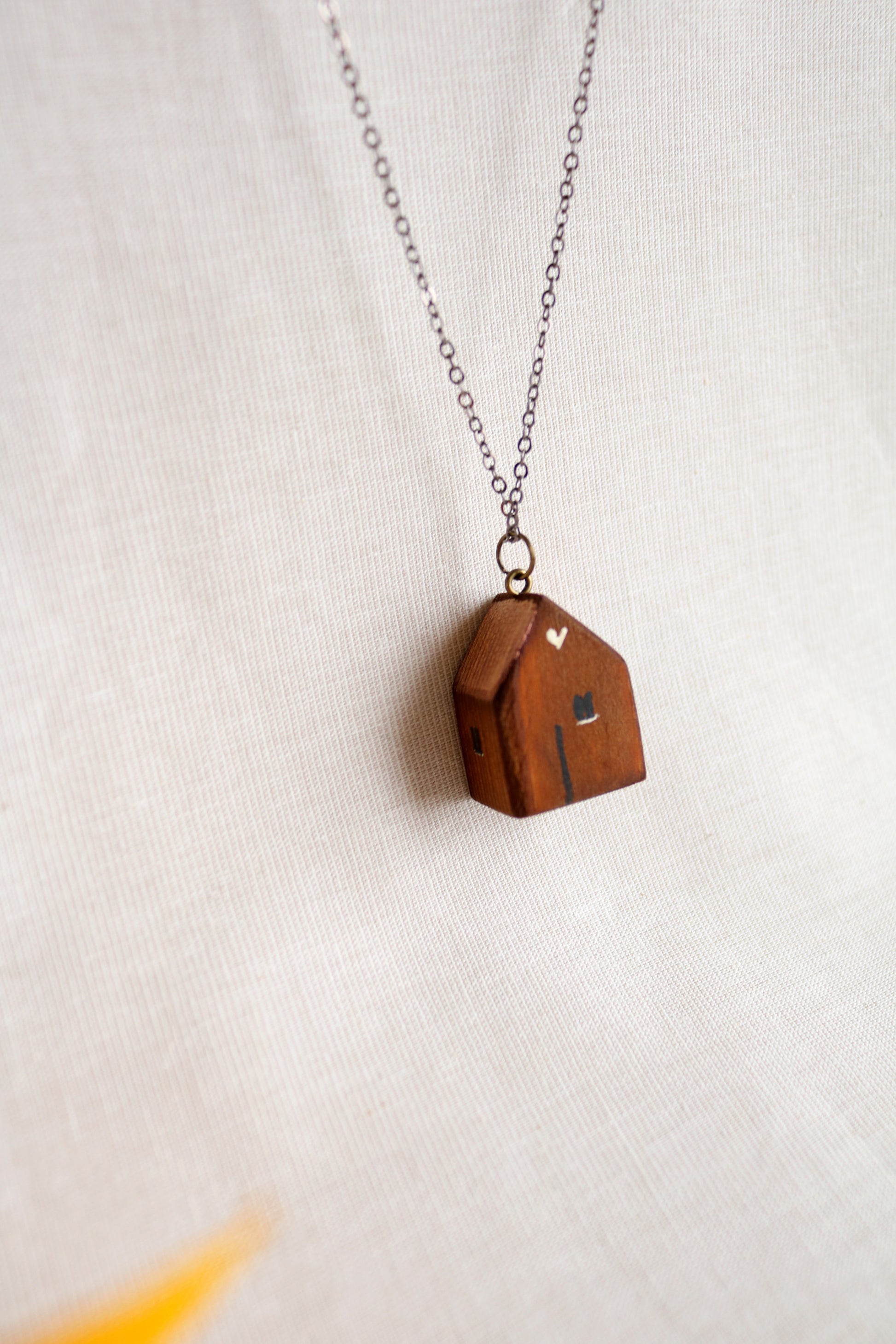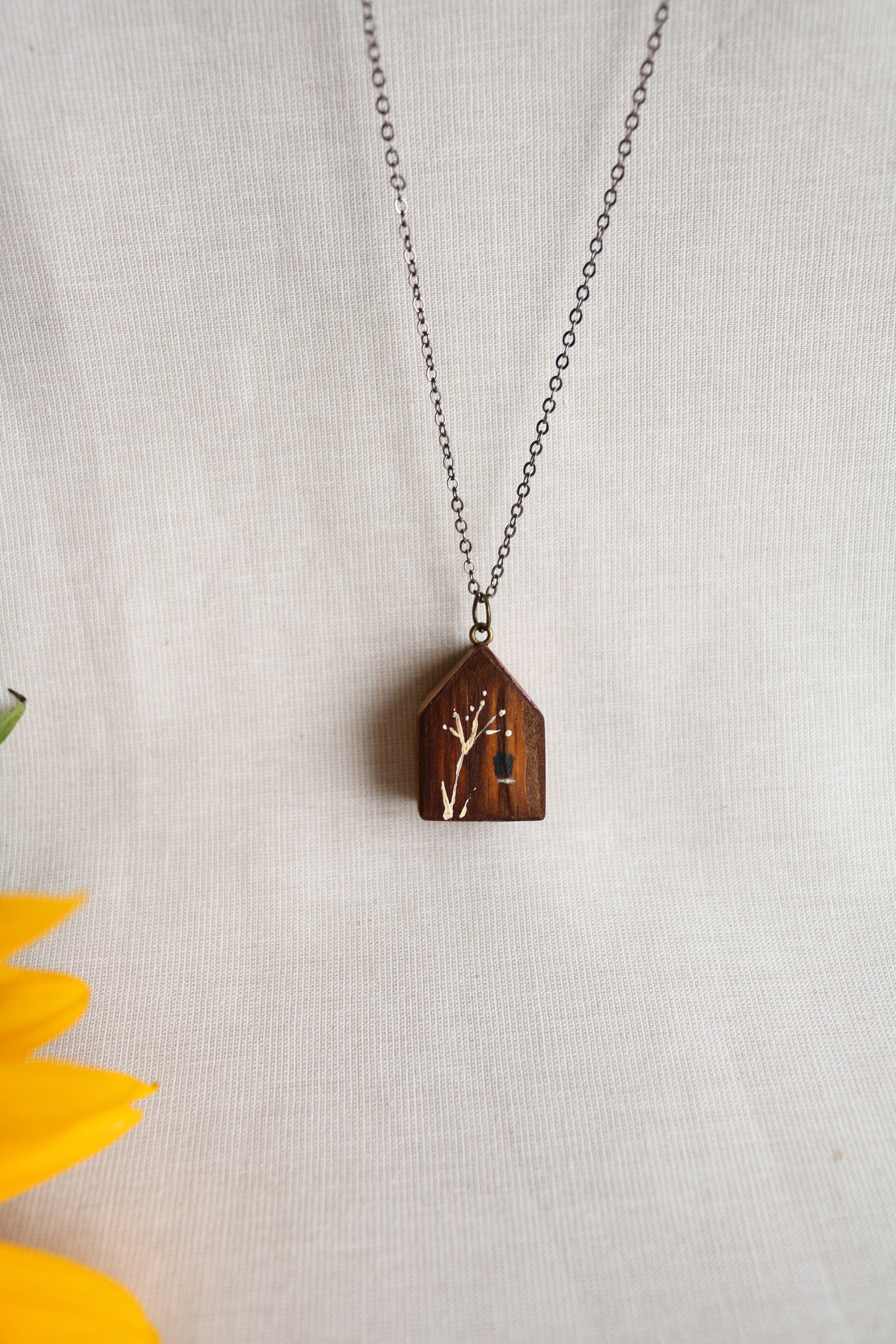 Очарователно дървена къща, изрисувано в топъл тъмен цвят от Милена Неделчева – символ на уют, топлина и стабилност. Малкото сърце ни напомня, че домът е там, където е любовта.