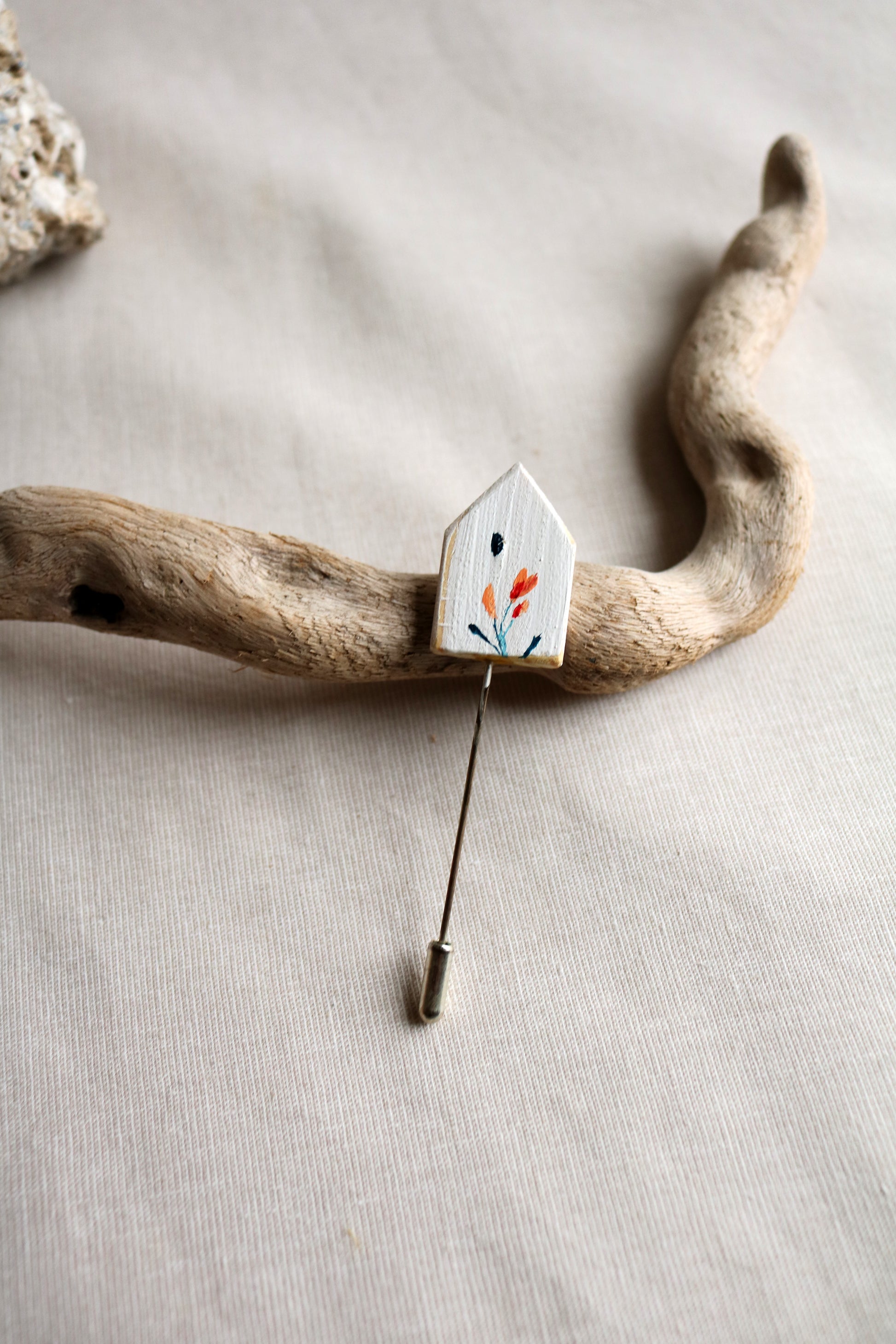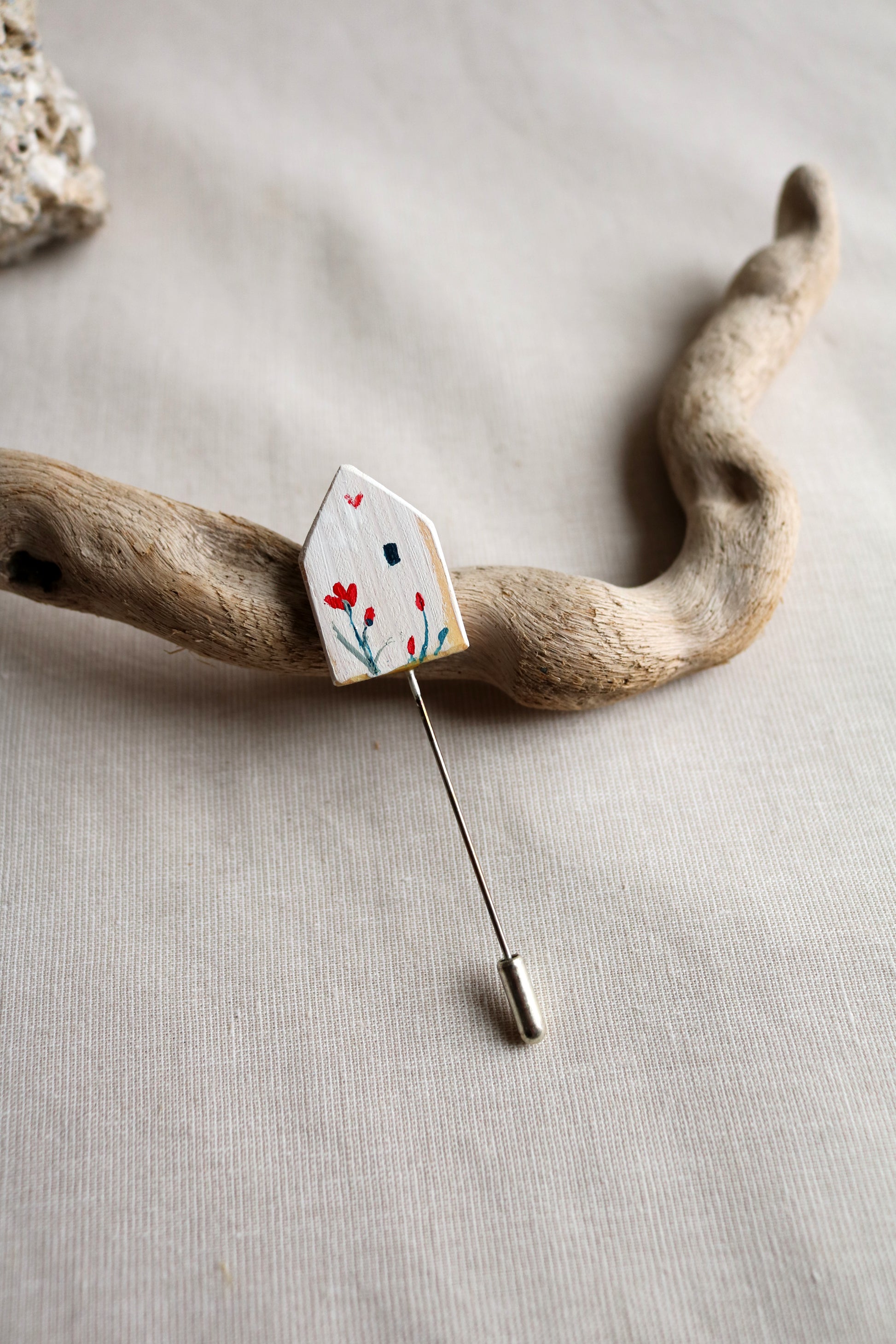Красива брошка, изработена от Милена Неделчева. Нежно изрисувана, изработена от дърво. Има две страни и вие решавате, коя да изберете.
