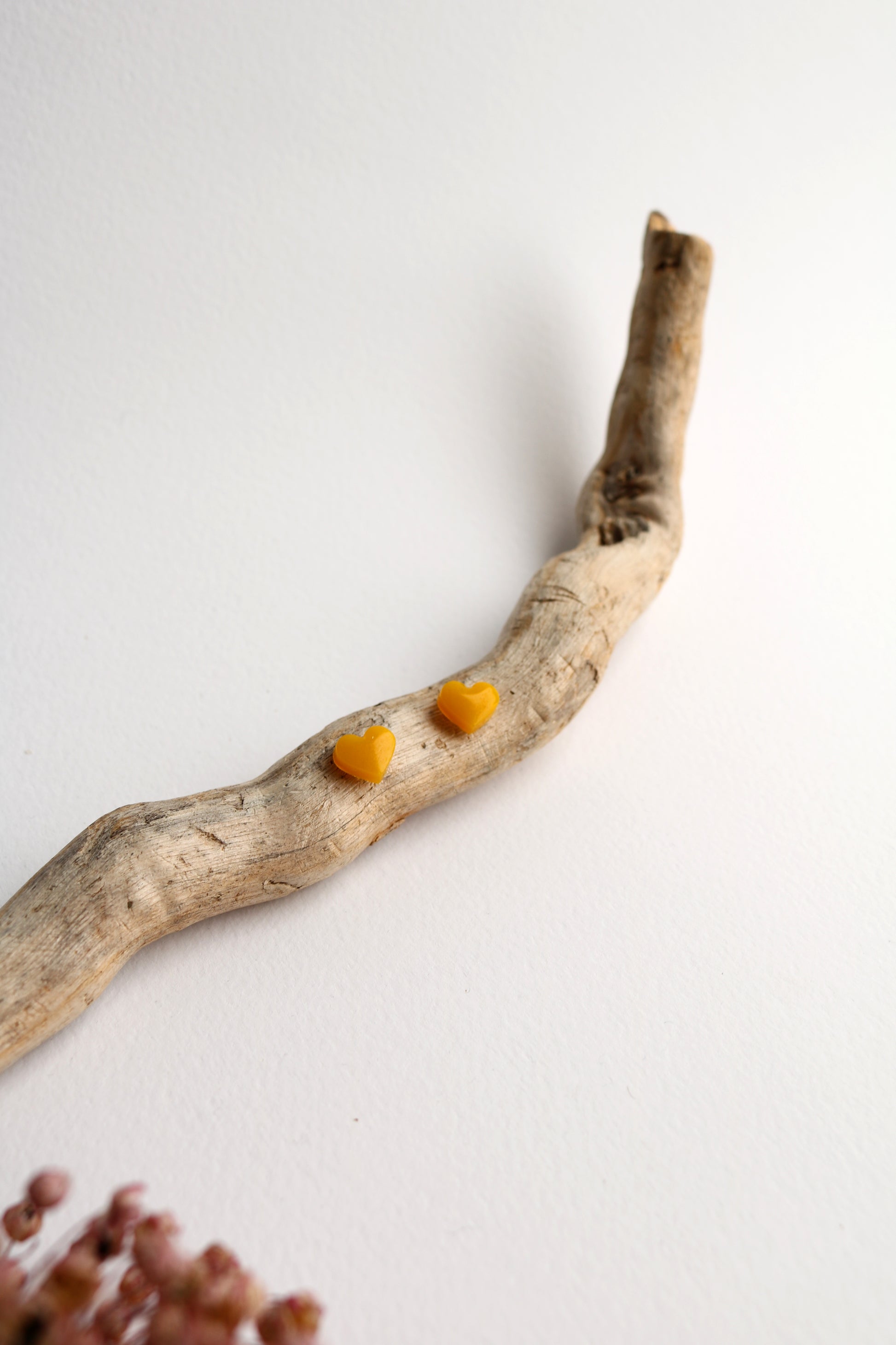 Нежни, малки сърца, изработени от епоксидна смола. Един приятен цвят, подходящ за слънчево настроение.