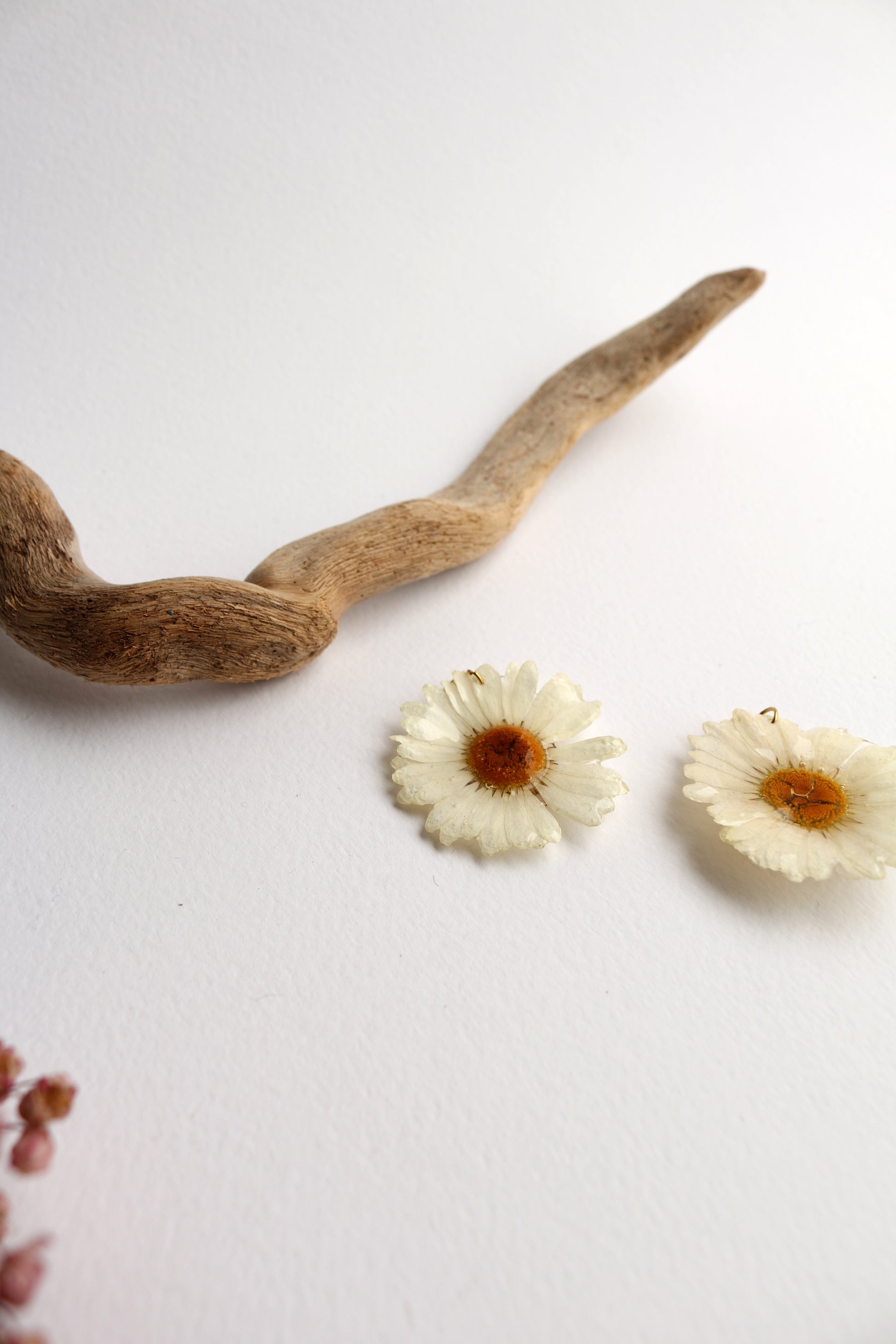 Улови магията на лятото с тези уникални обеци, изработени от истински маргаритки, запечатани завинаги в кристално чиста бижутерийна смола. Всеки чифт е уникален, създаден с внимание и любов към природата. Леки, нежни и романтични – идеалният акцент към натурална, бохо или винтидж визия.