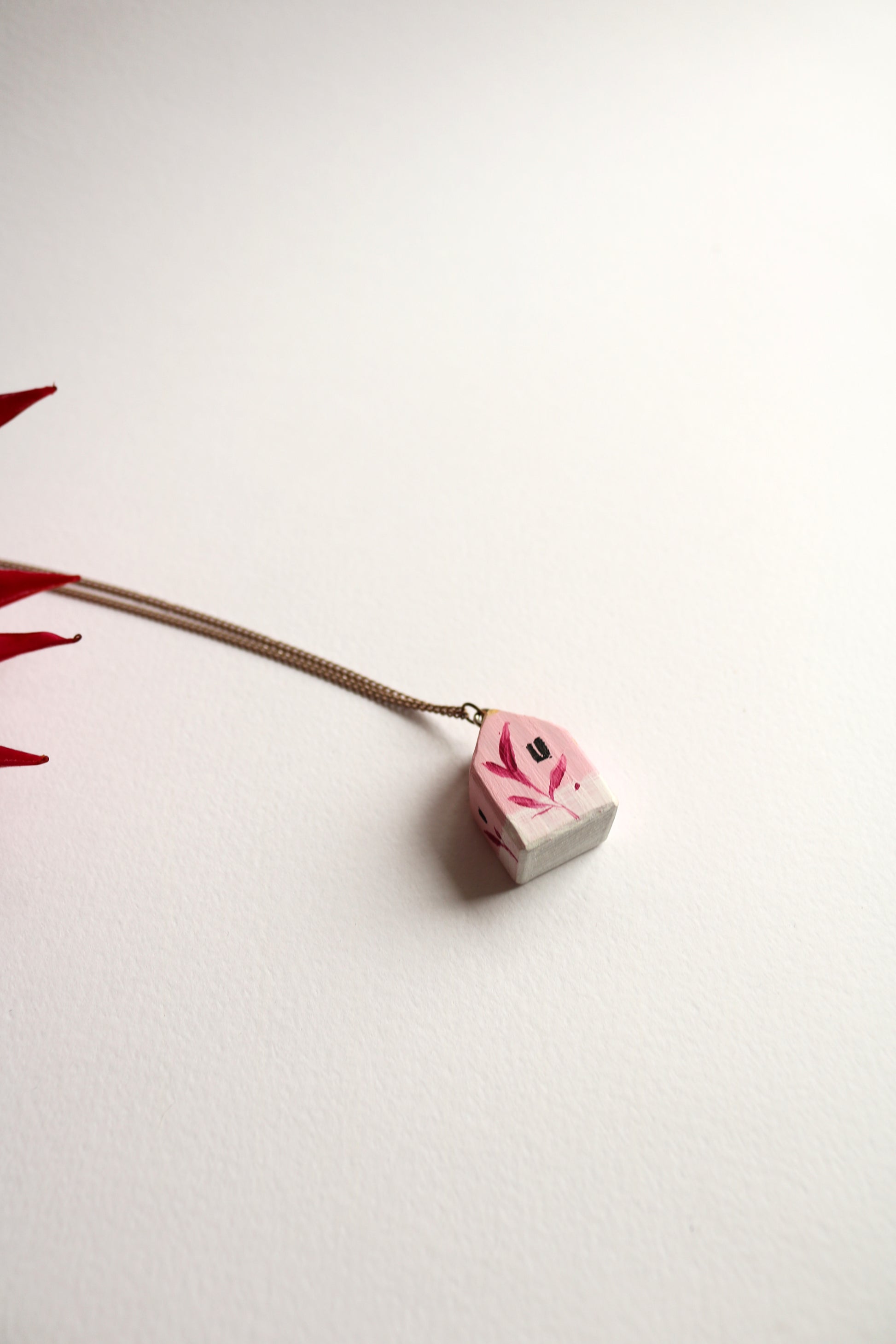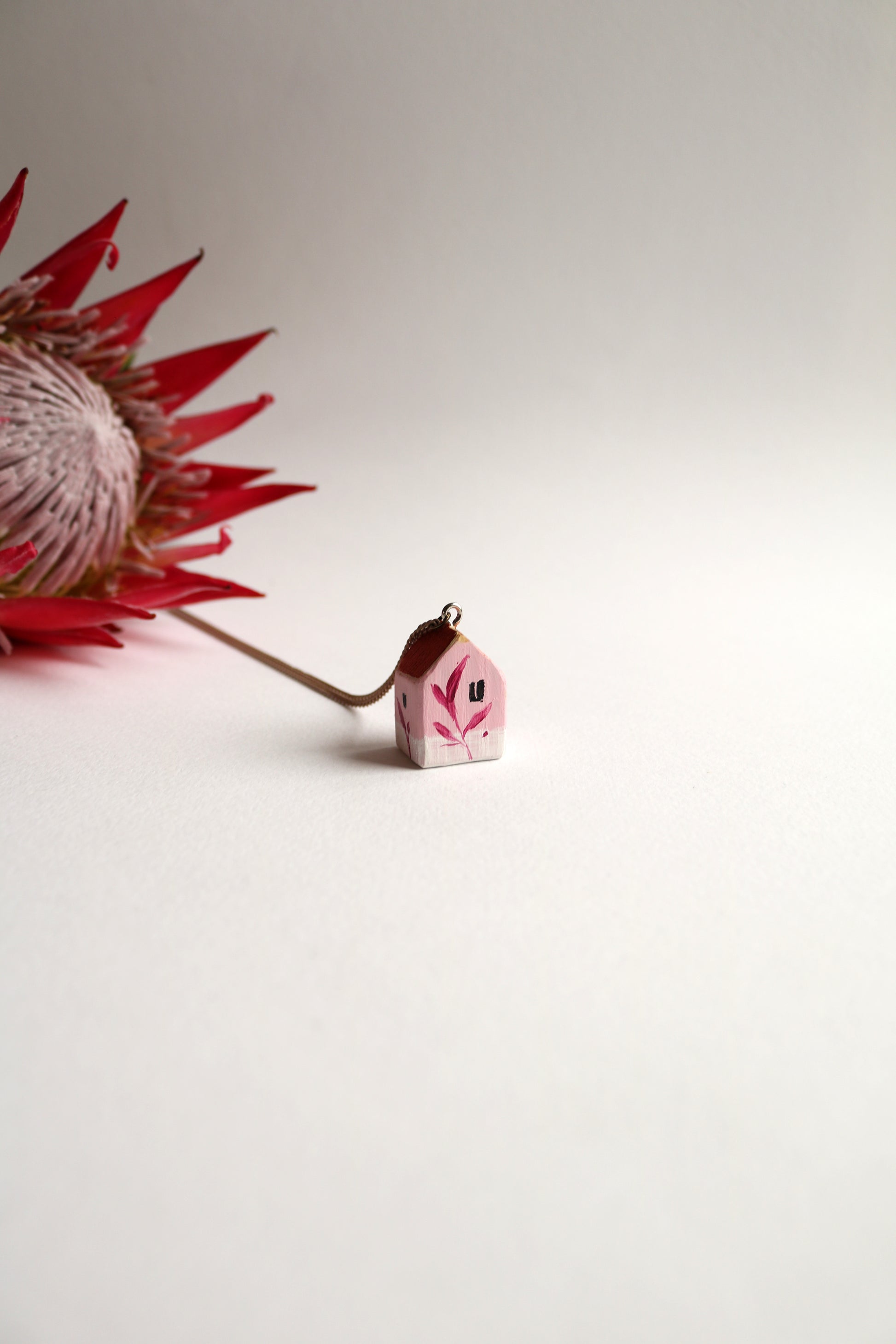 Гердан с розова къща – нежна, приказна и изпълнена с уют. Изрисувана от прекрасната Милена Неделчева.