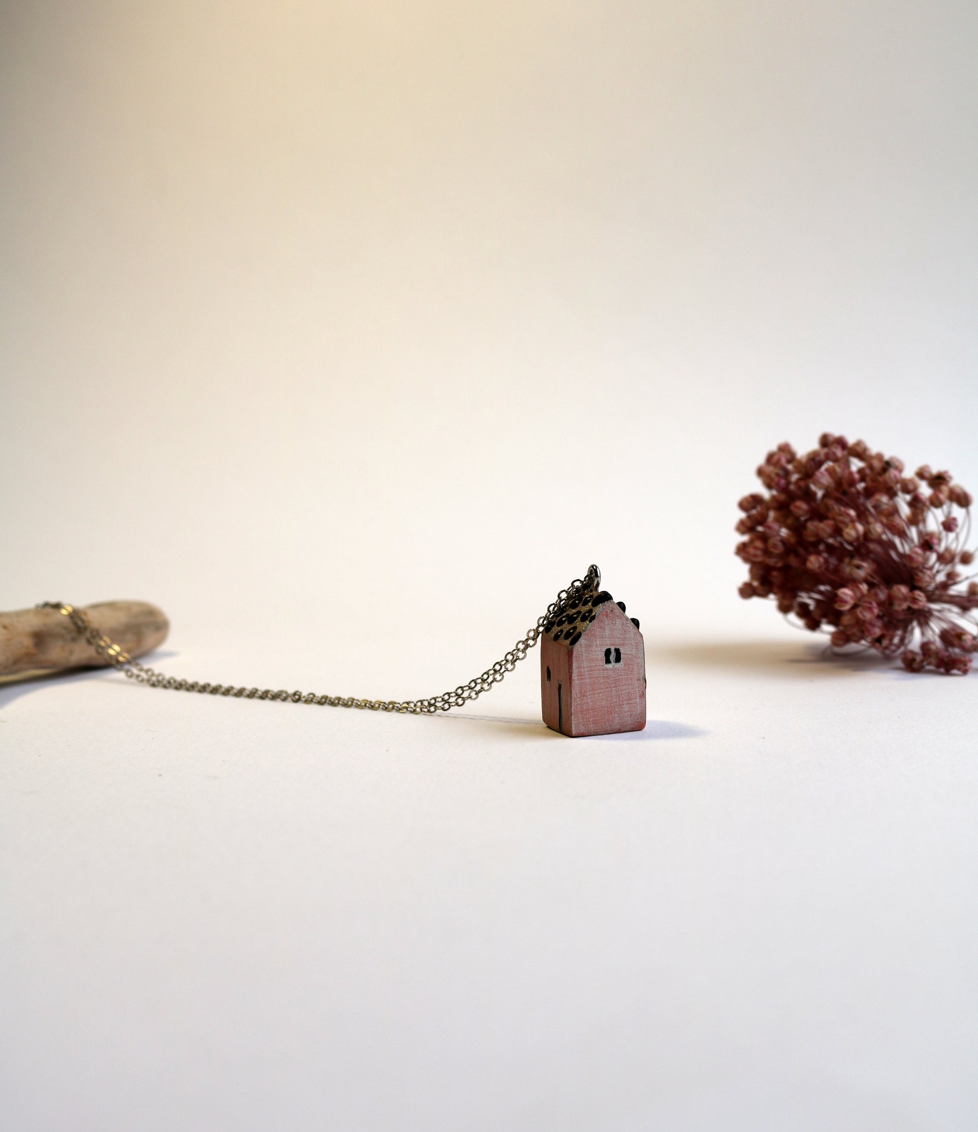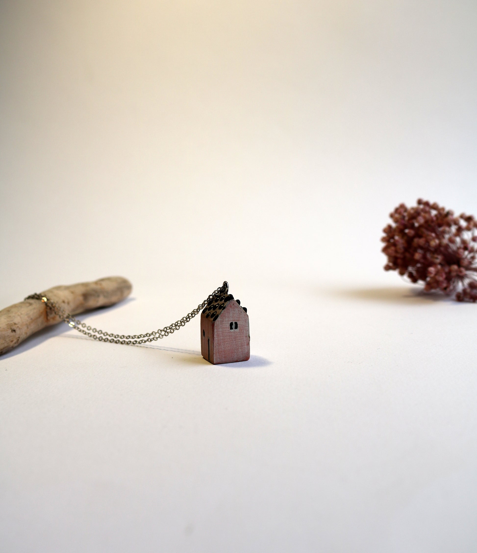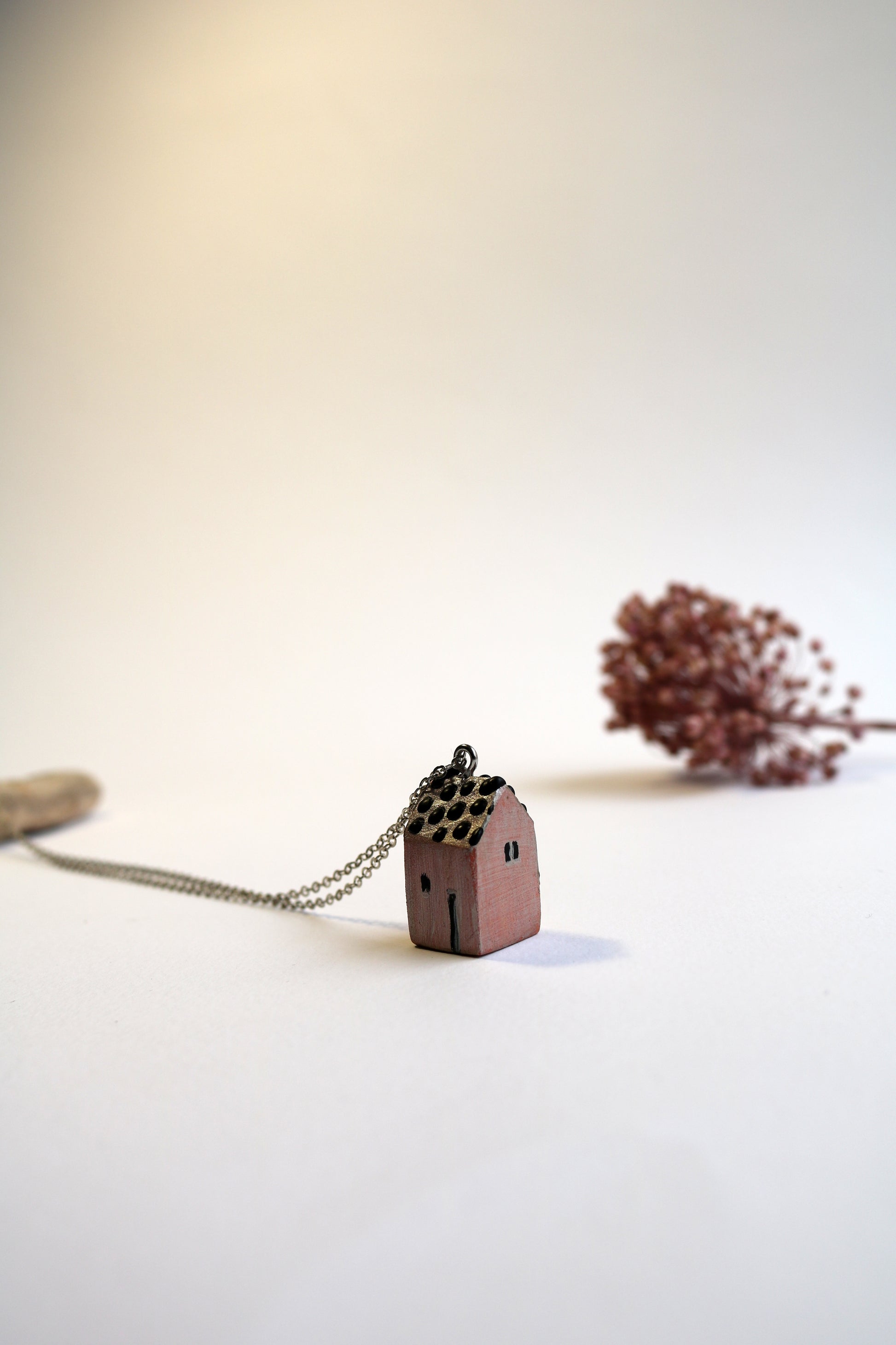 Приказен гердан, ръчно изработен от Милена Неделчева. Вълшебна къщичка от дърво, ръчно изрисувана с внимание и любов. Създава усещане за уют и топлина. Метална верижка – дължина 41 см, къщичка – 3 см.