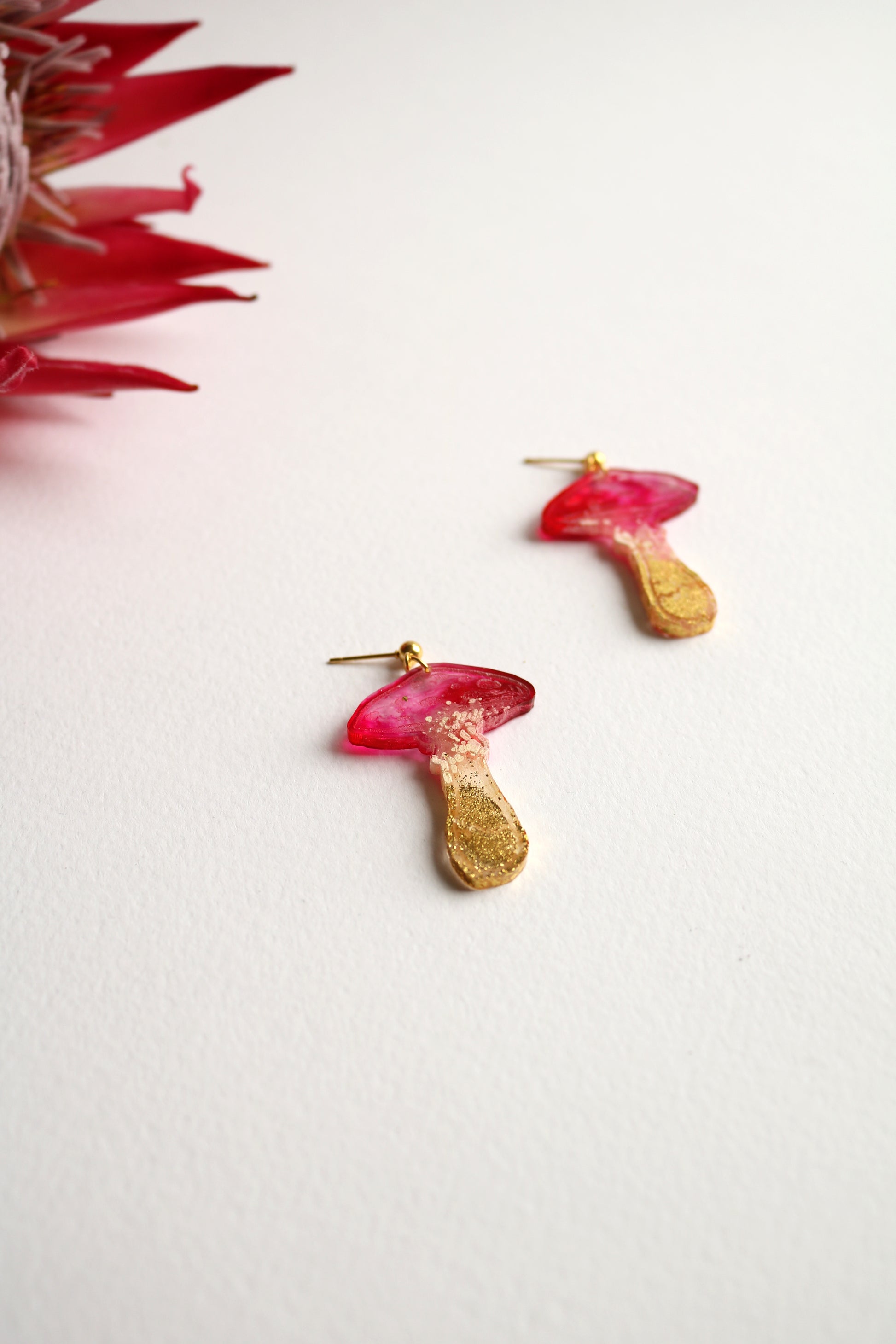 Обеци, изработени от епоксидна смола във формата на любимите ми мухоморки. Много леки и ефирни – сякаш набрани от магическа гора. Ще допринесат за една чудна, приказна визия.