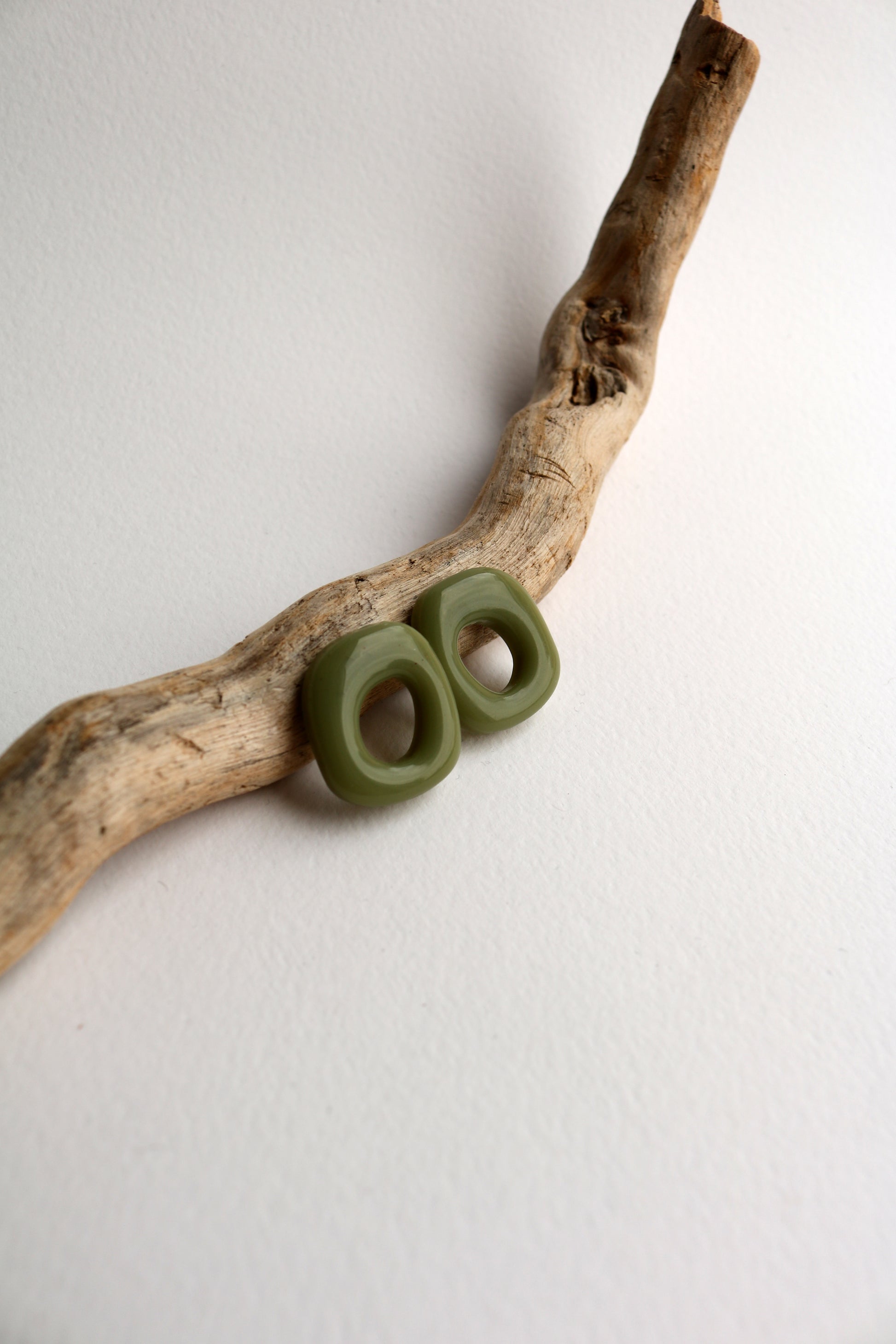 Обеци, изработени от епоксидна смола. Неправилна форма, любим зелен цвят, щифтове от неръждаема стомана. Много леки и удобни. Естествен цвят, подходящ за всяко настроение и за подарък.