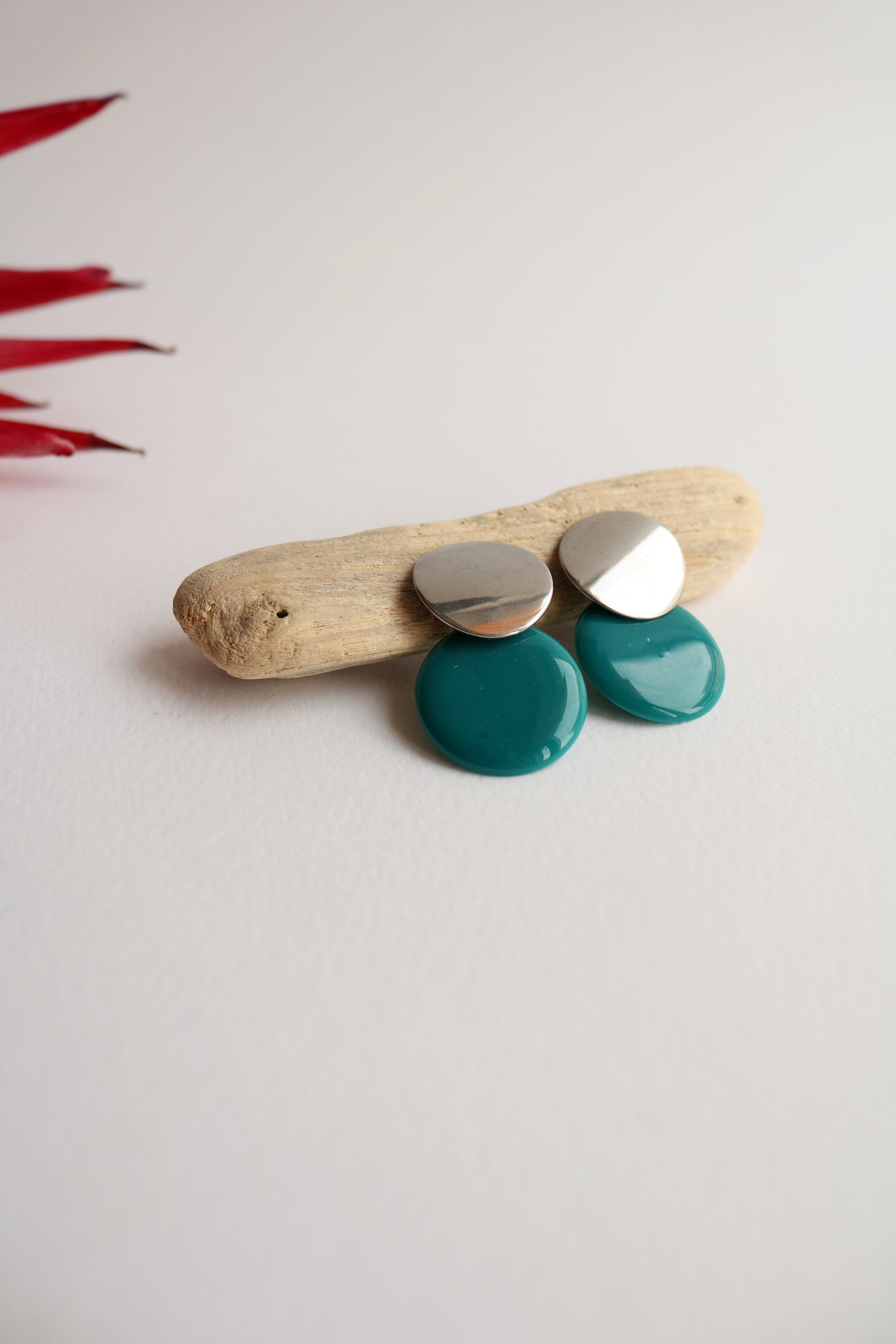 Обеци, изработени от епоксидна смола. Нежен сребърен елемент, който придава елегантност и стил. Идеални за всеки ден и всякакви поводи.