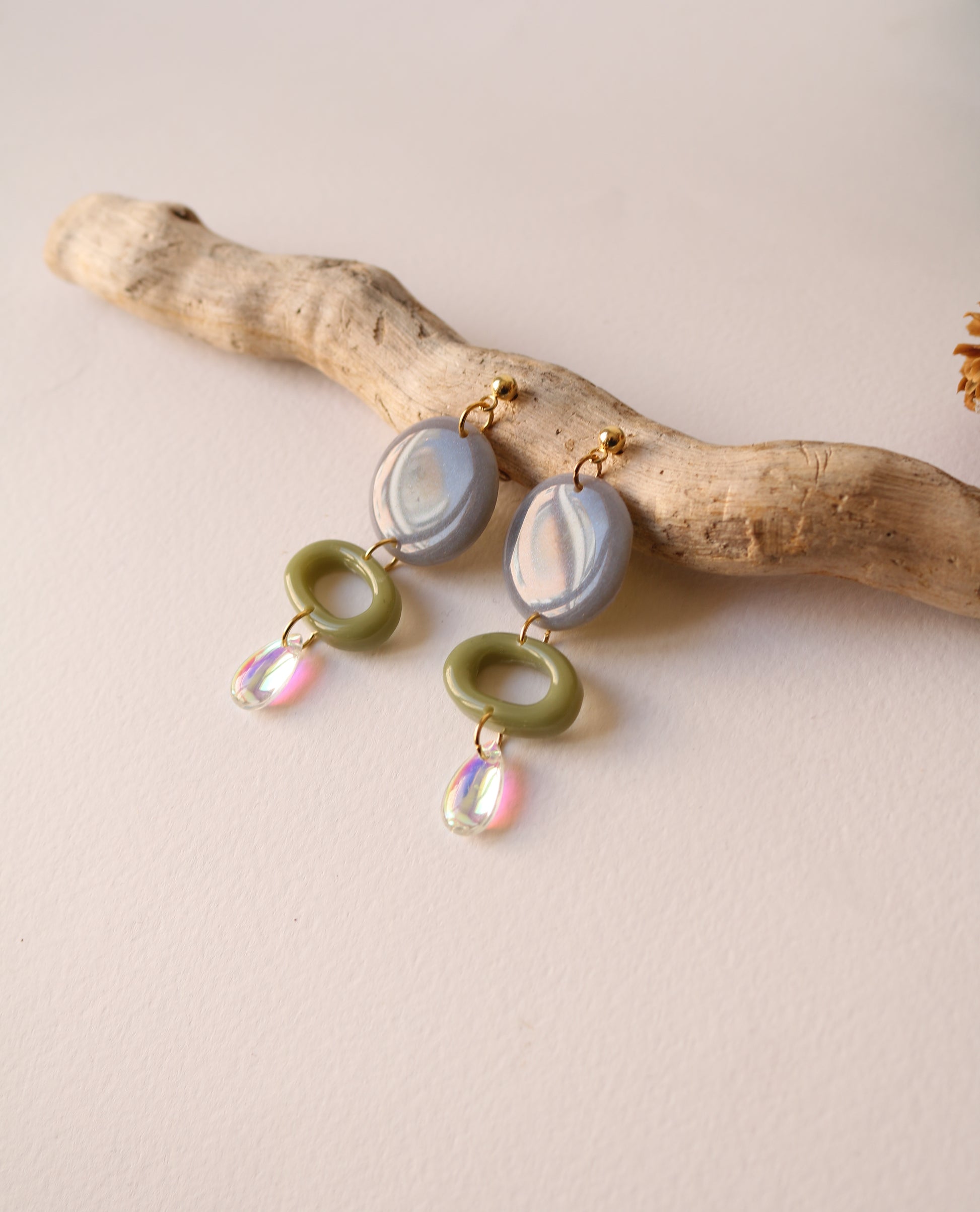 Ръчно изработени, висящи обеци от епоксидна смола с фин брокат.