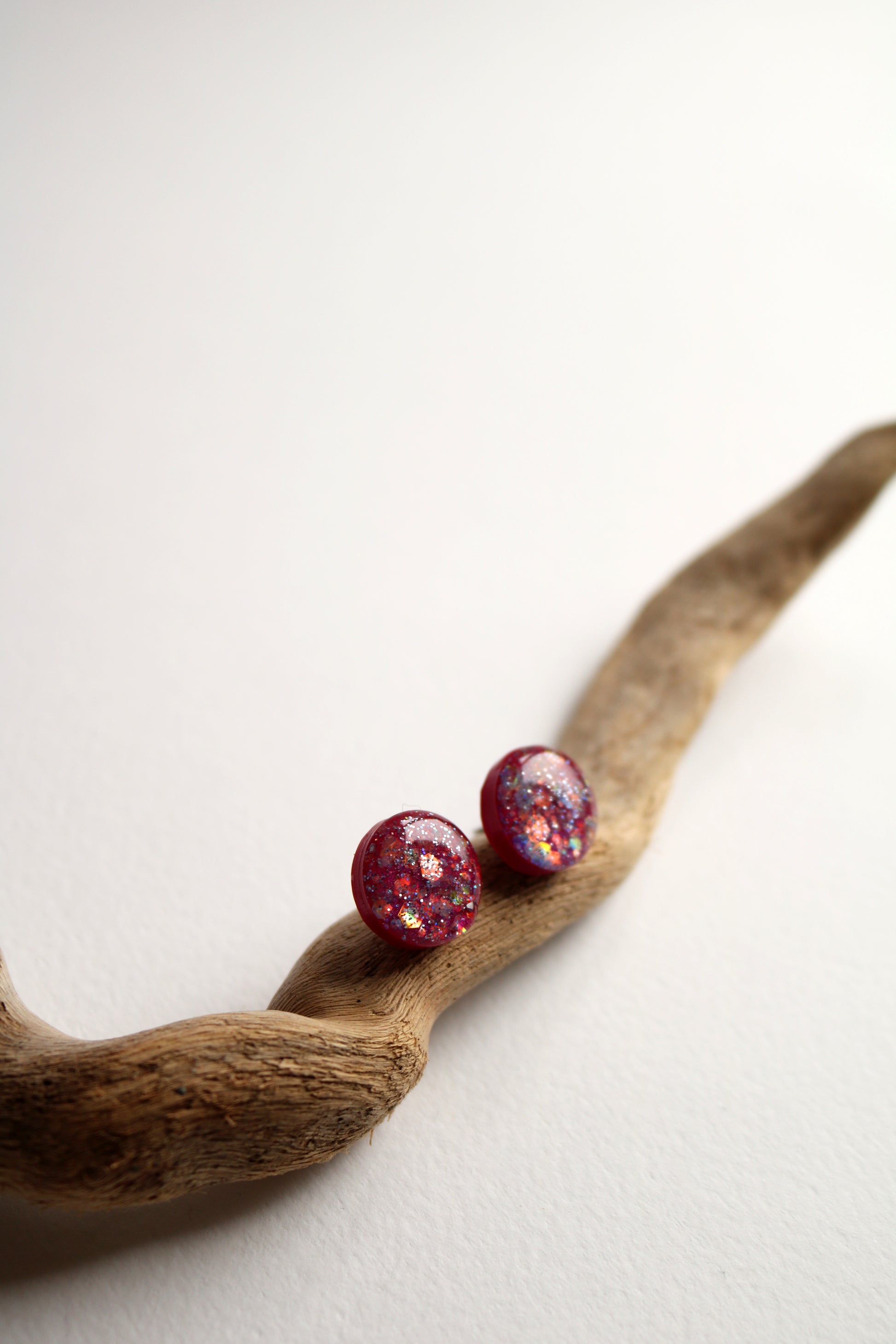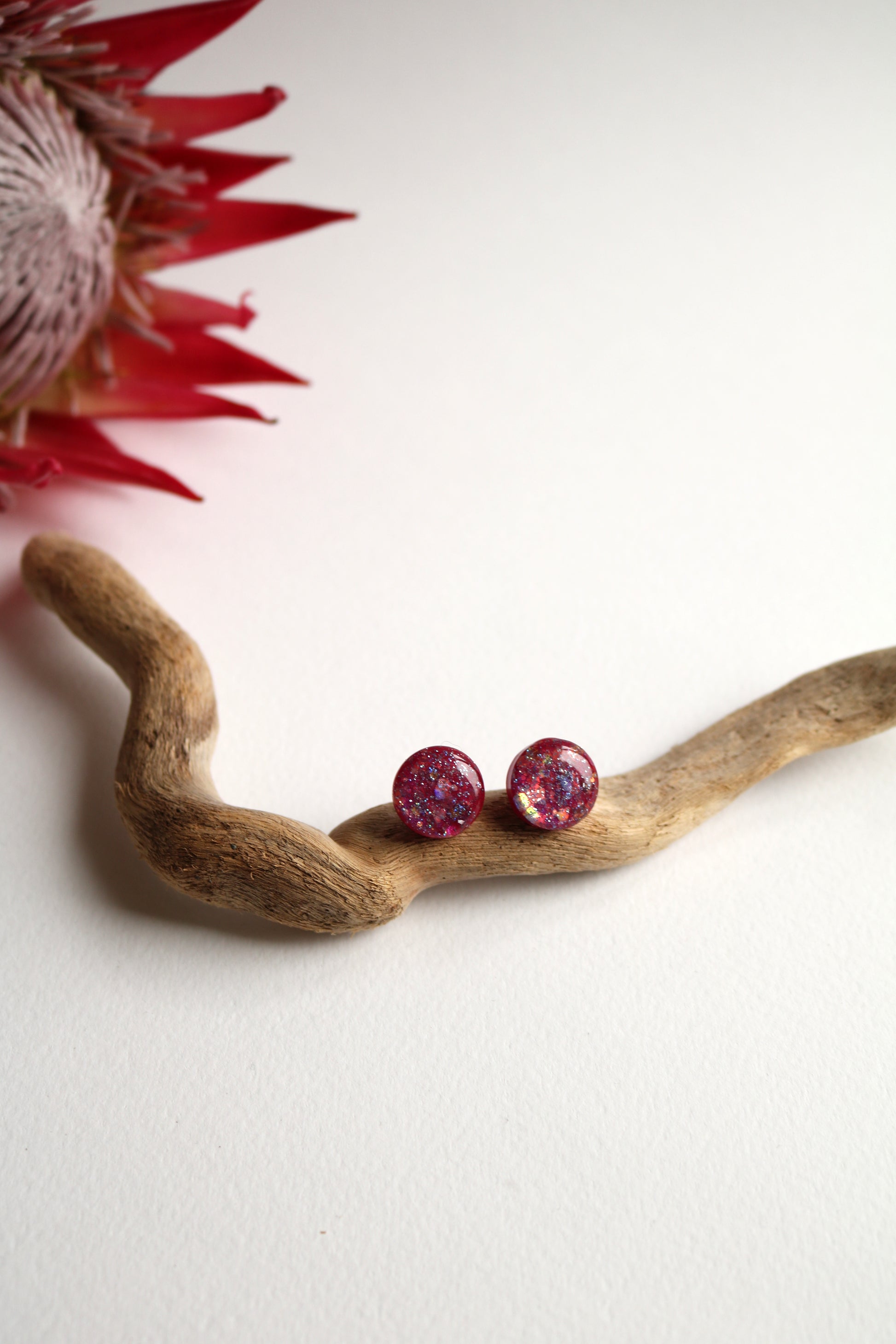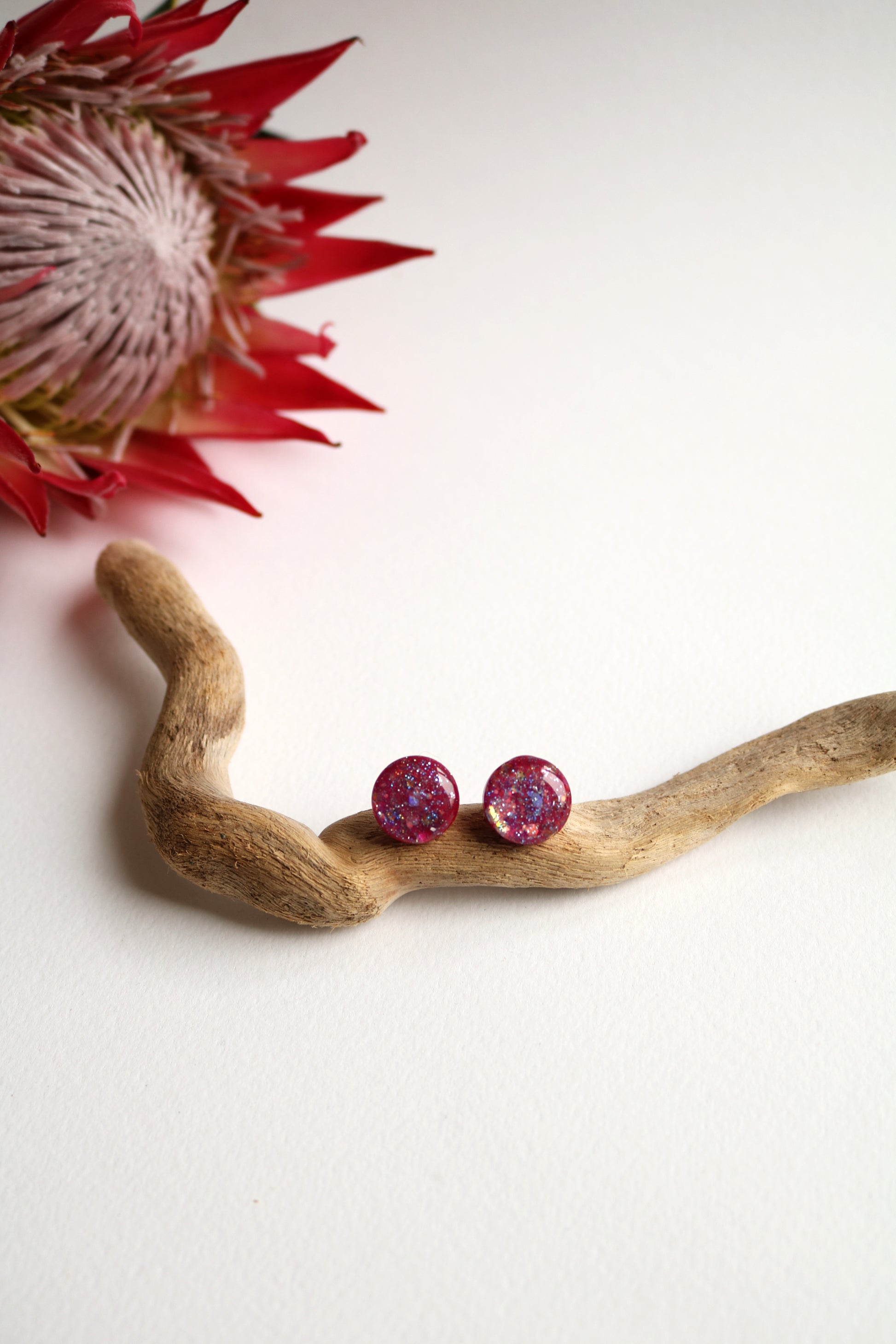 Малки обеци, които носят в себе си една магия. Изработени от епоксидна смола. Щифтове от неръждаема стомана.