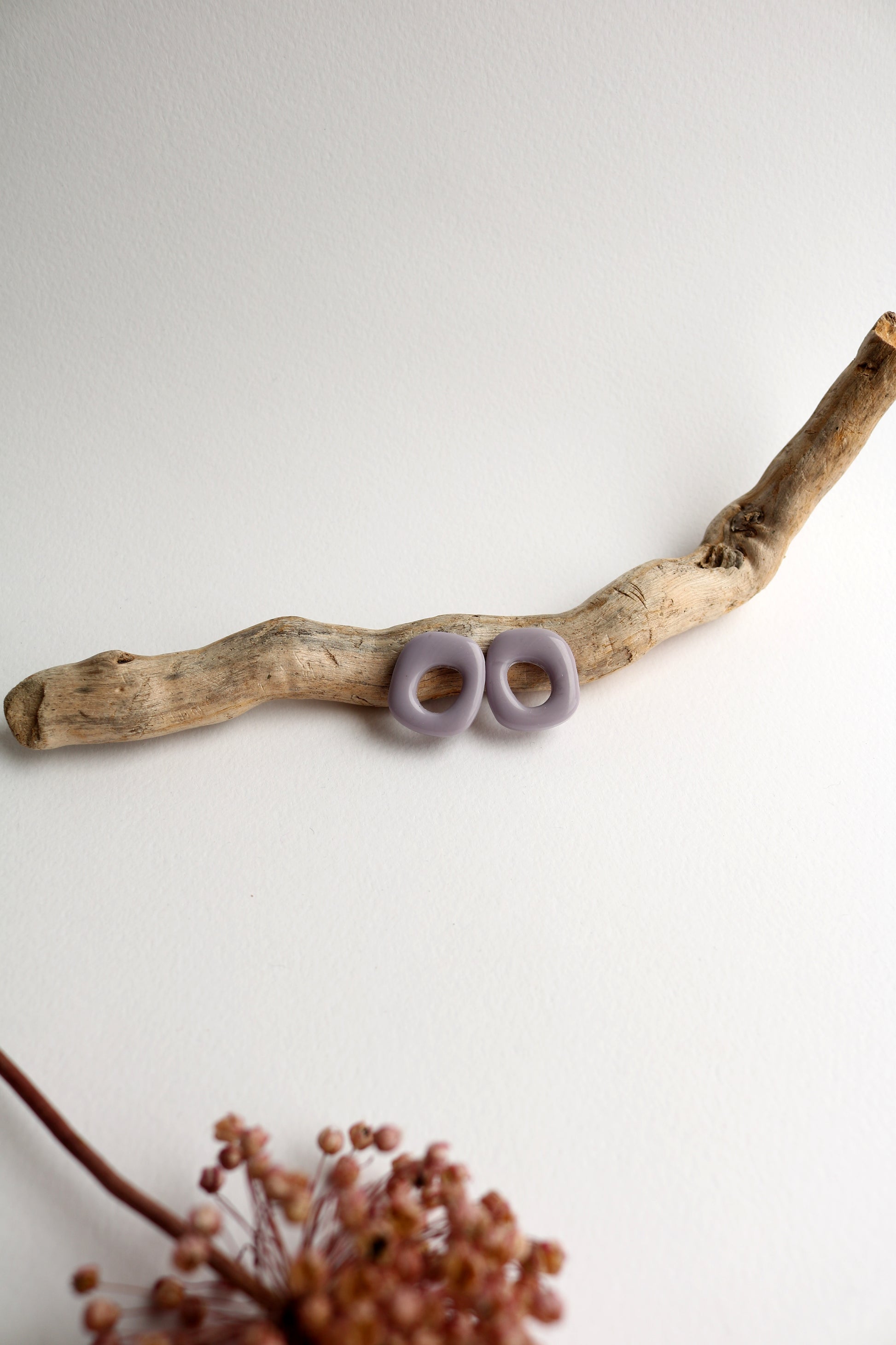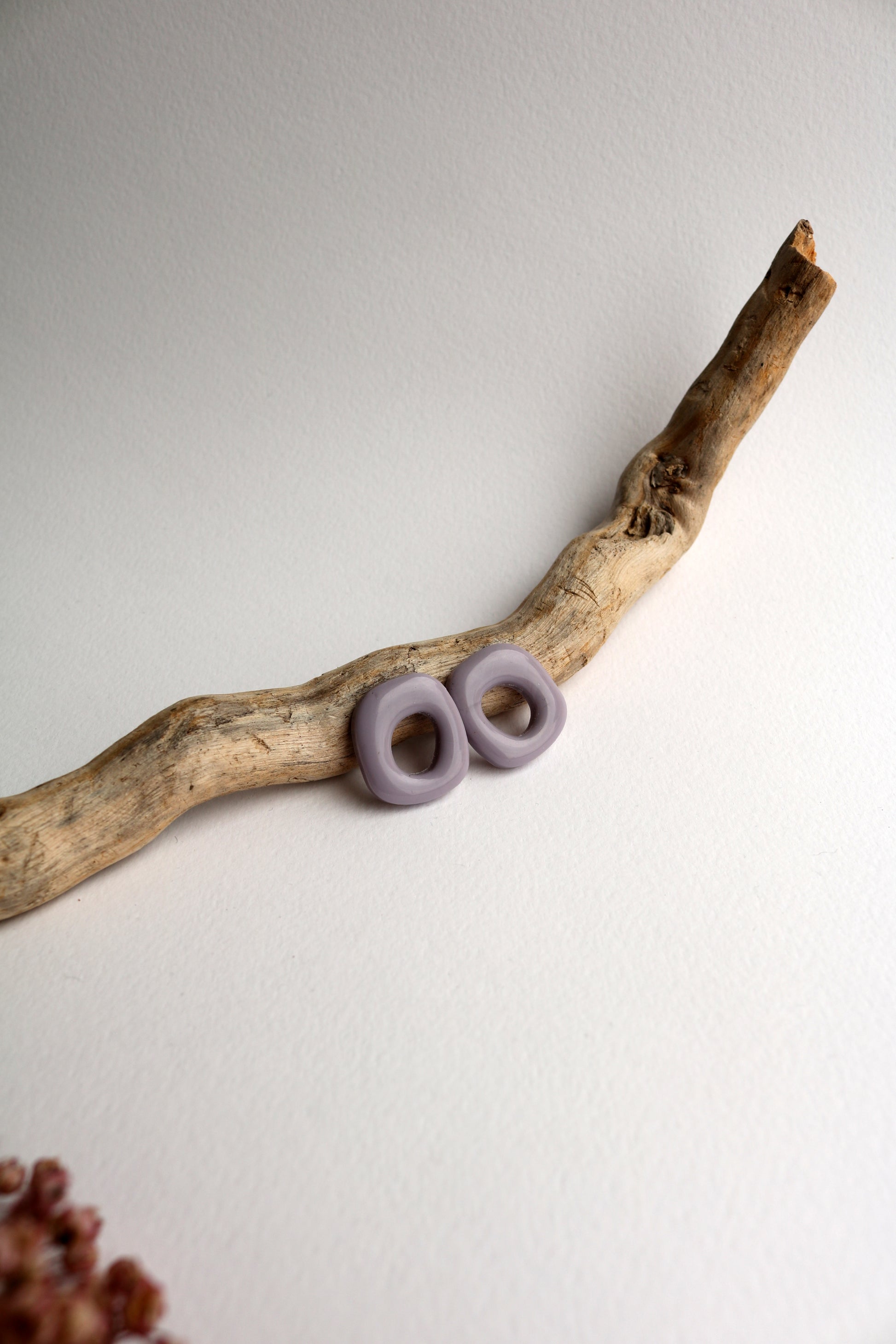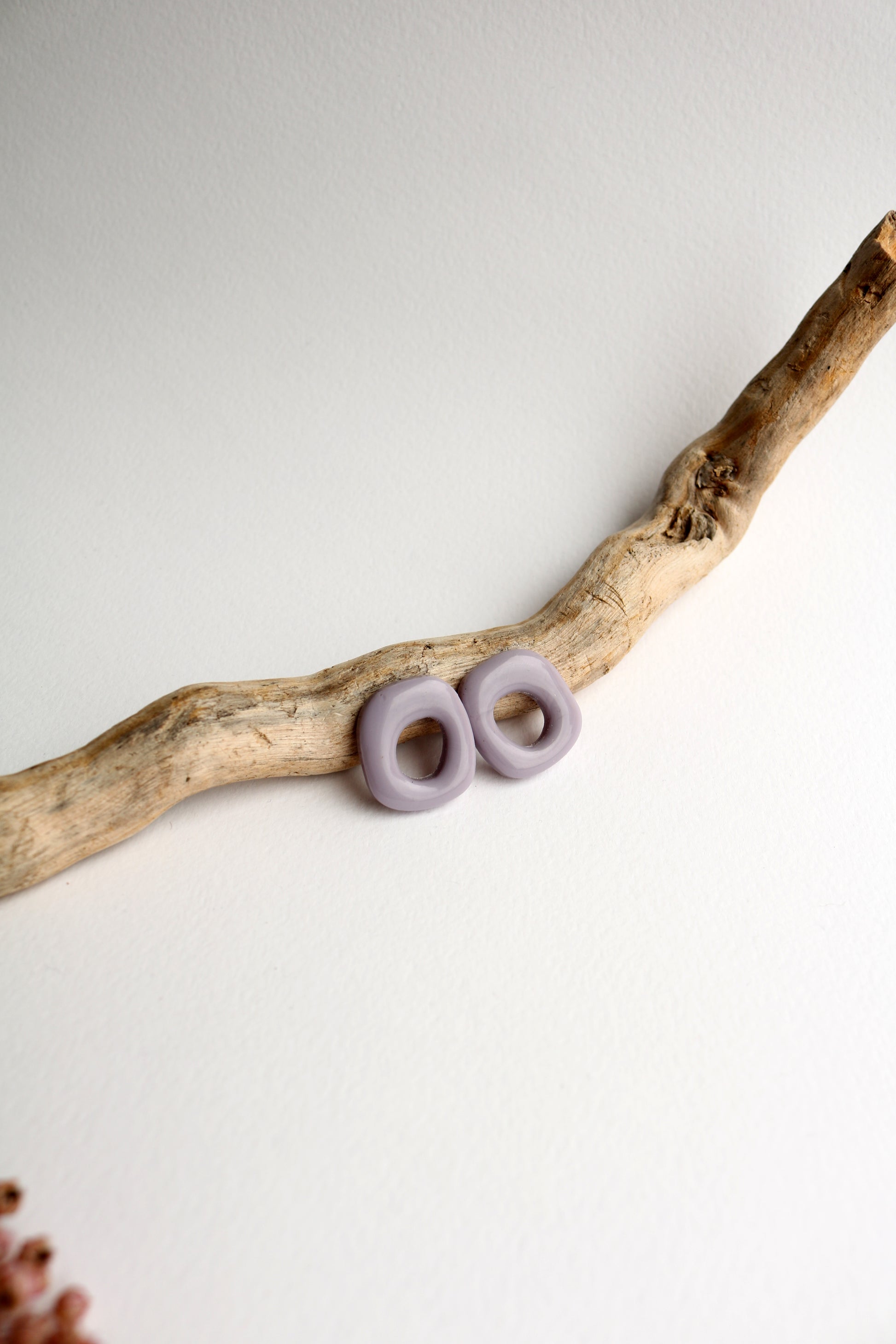 Нежни и ефирни, тези обеци в светло лилаво са изработени от смола в органична, естествена форма. Лекотата на дизайна се съчетава с елегантен блясък, а щифтовете от неръждаема стомана гарантират комфорт и издръжливост.