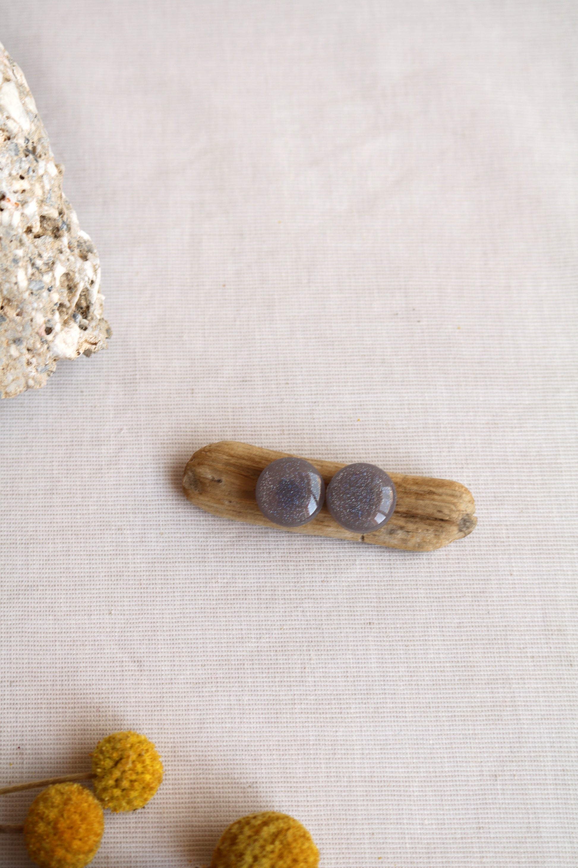 Нежни обеци, изработени от епоксидна смола. Вълшебен брокат, който придава красив блясък. Подходящи както за ежедневни, така и за вечерни събития. Щифтове от неръждаема стомана.