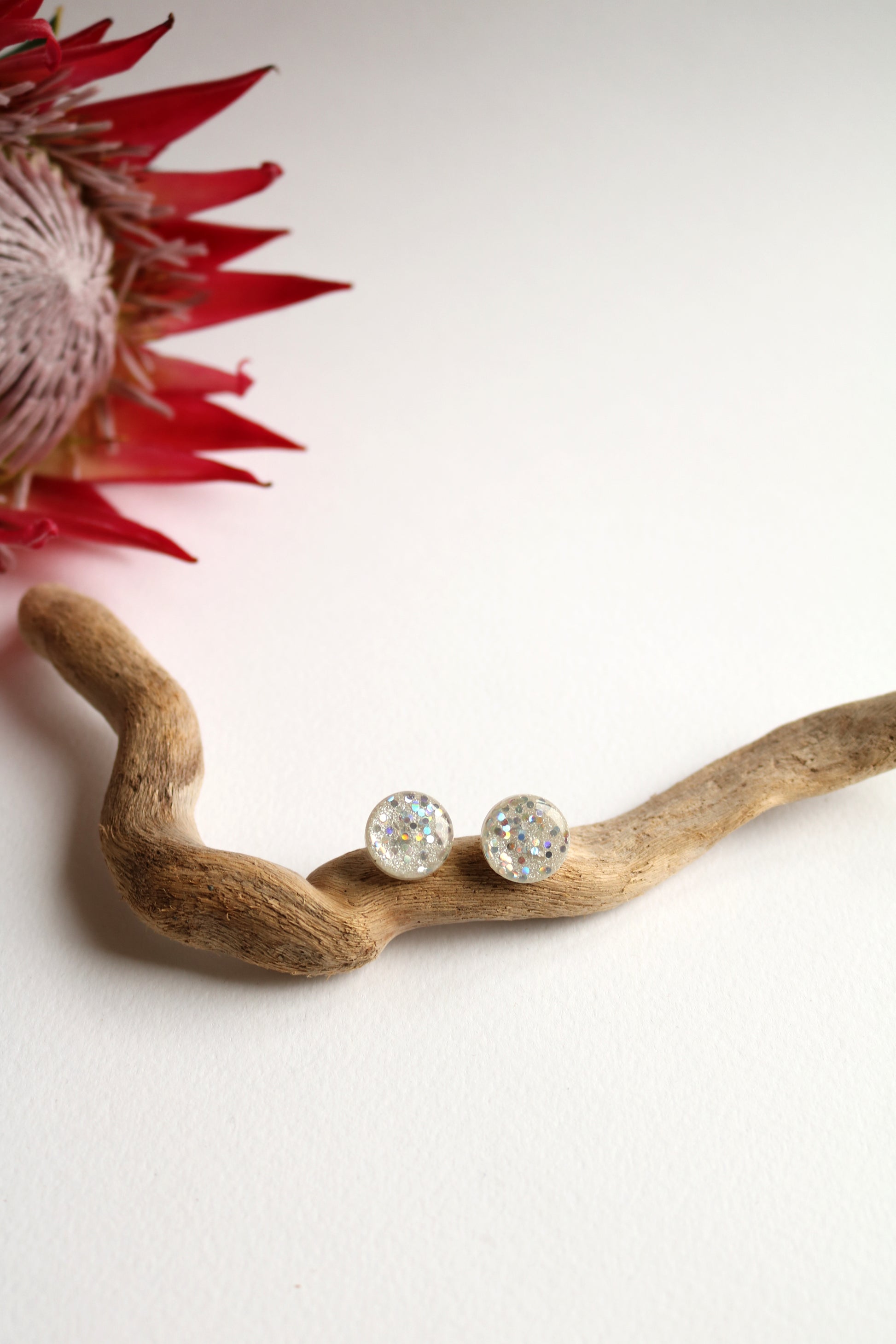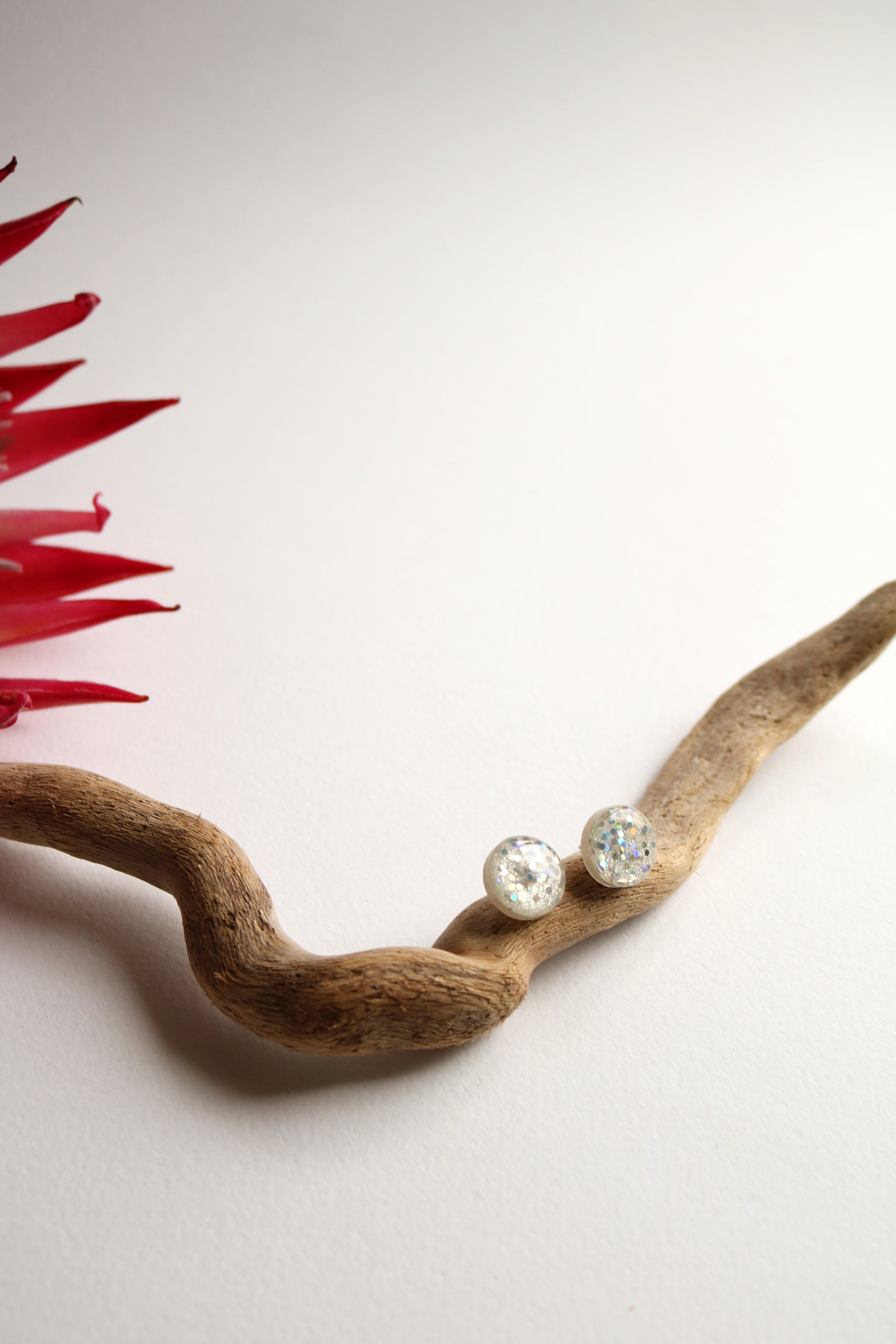 Нежни обеци, изработени от епоксидна смола. Щифтове от неръждаема стомана.