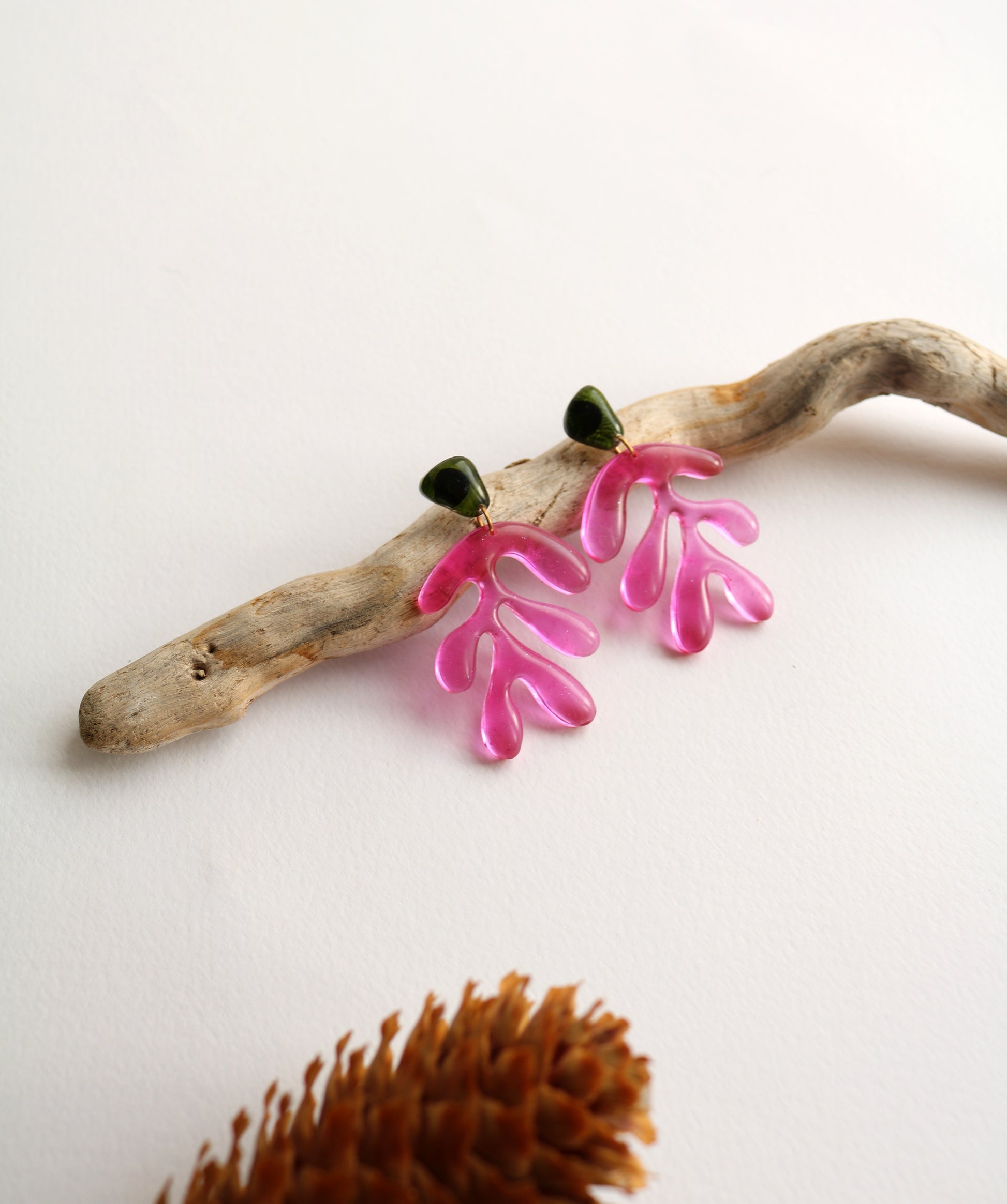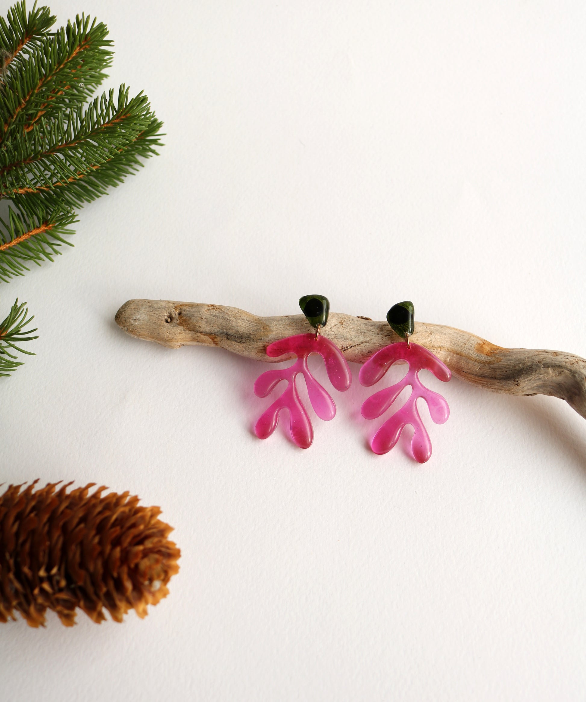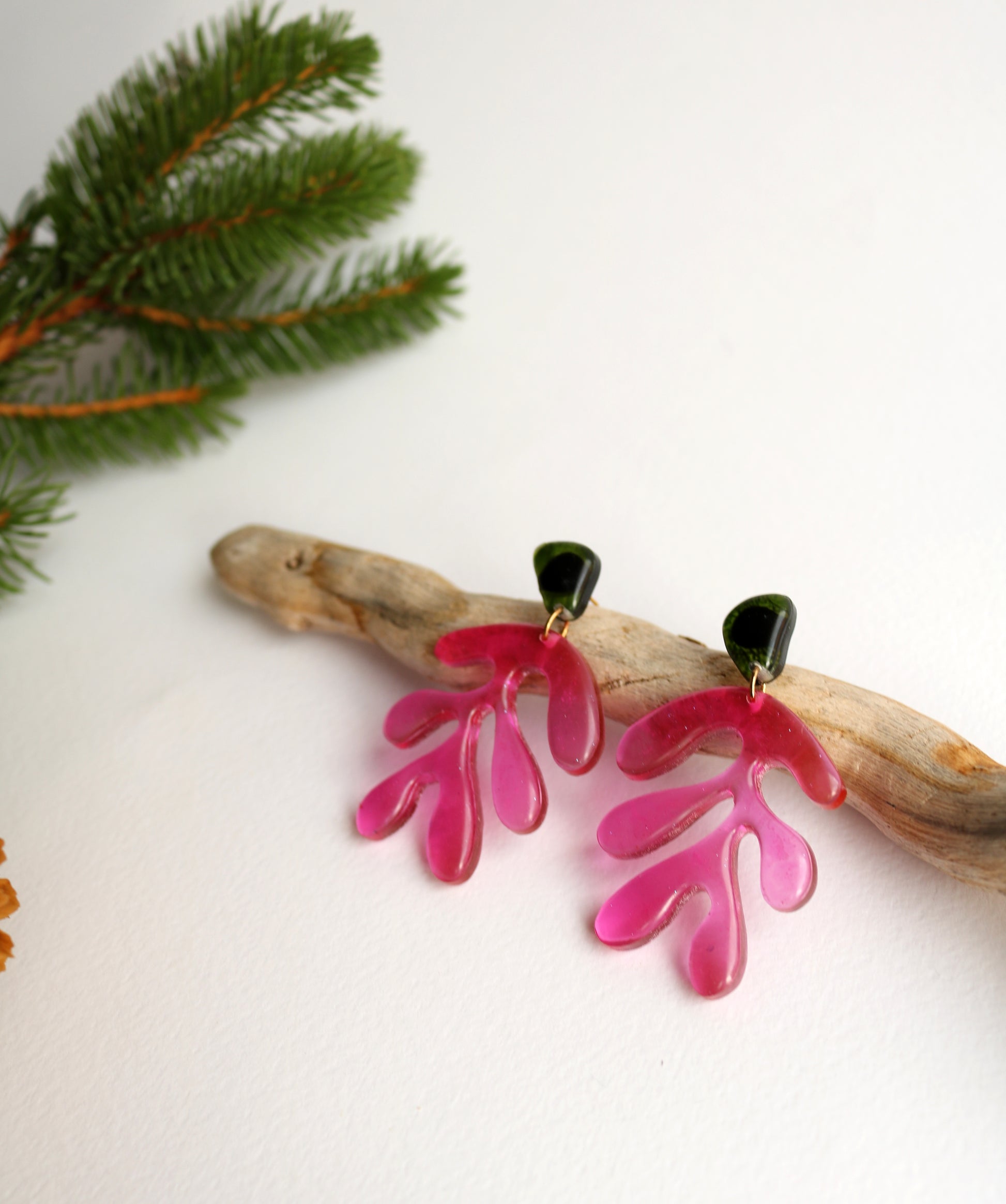 Ръчно изработени обеци от епоксидна смола. Форми вдъхновени от Анри Матис. Органични, неправилни и красиви. Щифтове от неръждаема стомана.