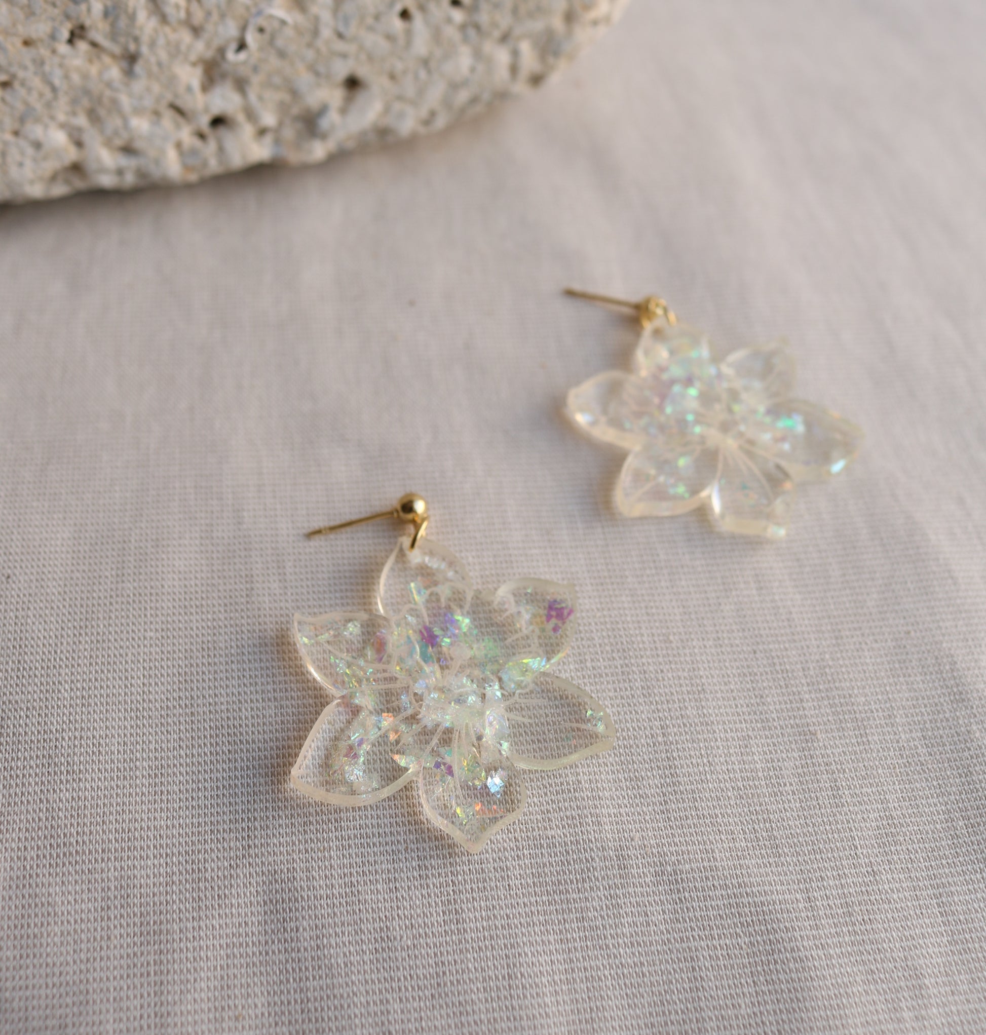 Ръчно изработени обеци във формата на нарциси. Направени са от епоксидна смола. Щифтове от неръждаема стомана.