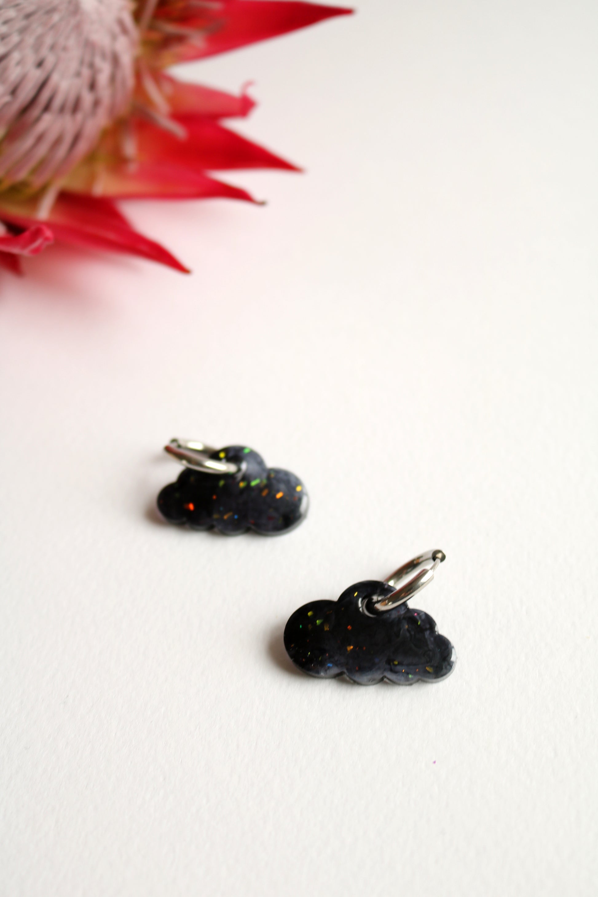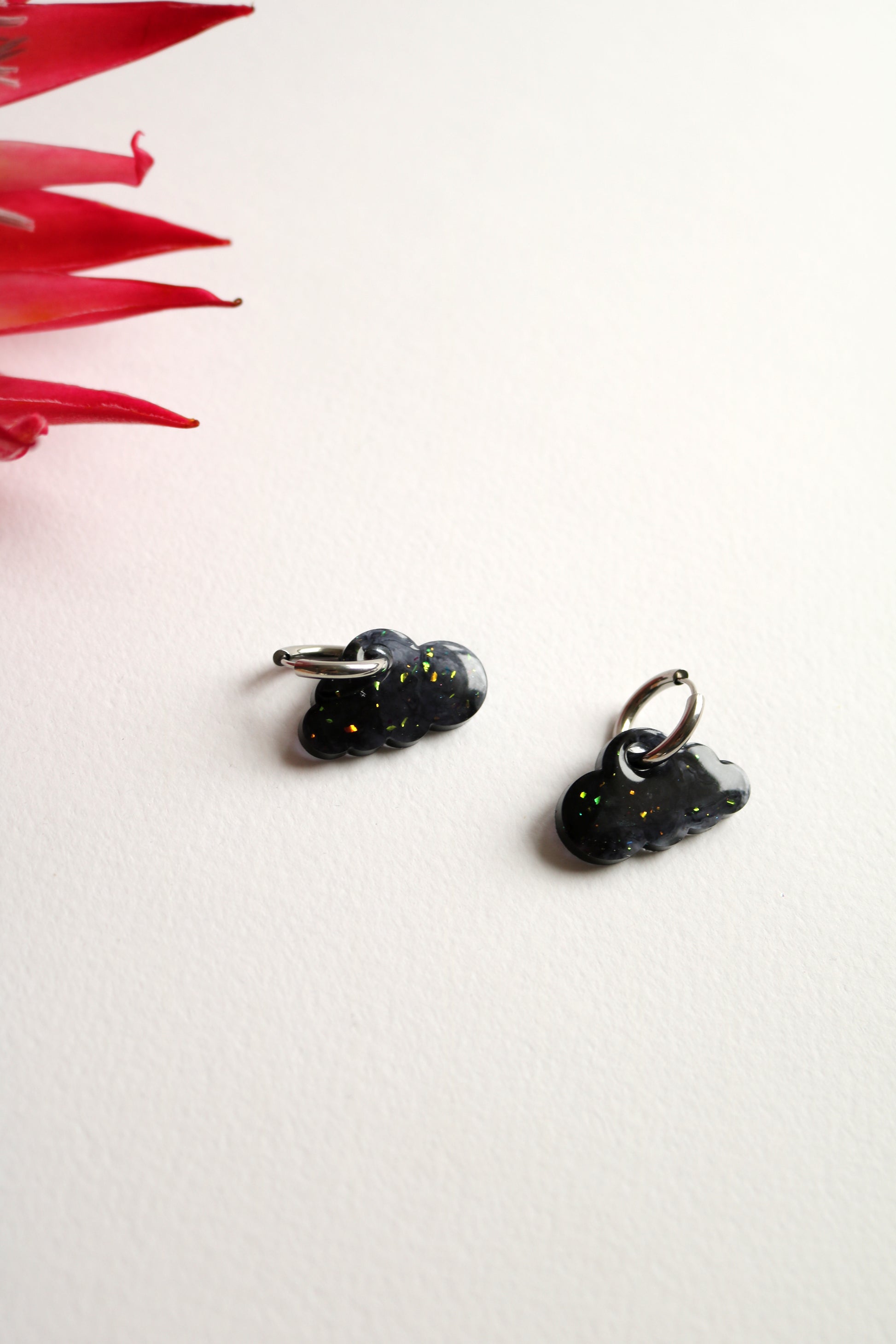 Епоксидни обеци във формата на облачета – елегантни и нежни, подходящи както за специални поводи, така и за ежедневието. Халки в сребърен цвят от неръждаема стомана.