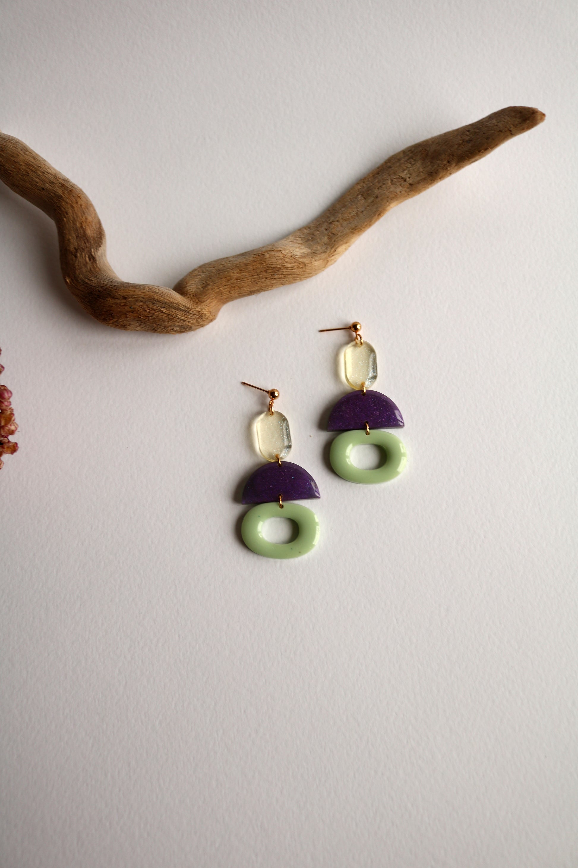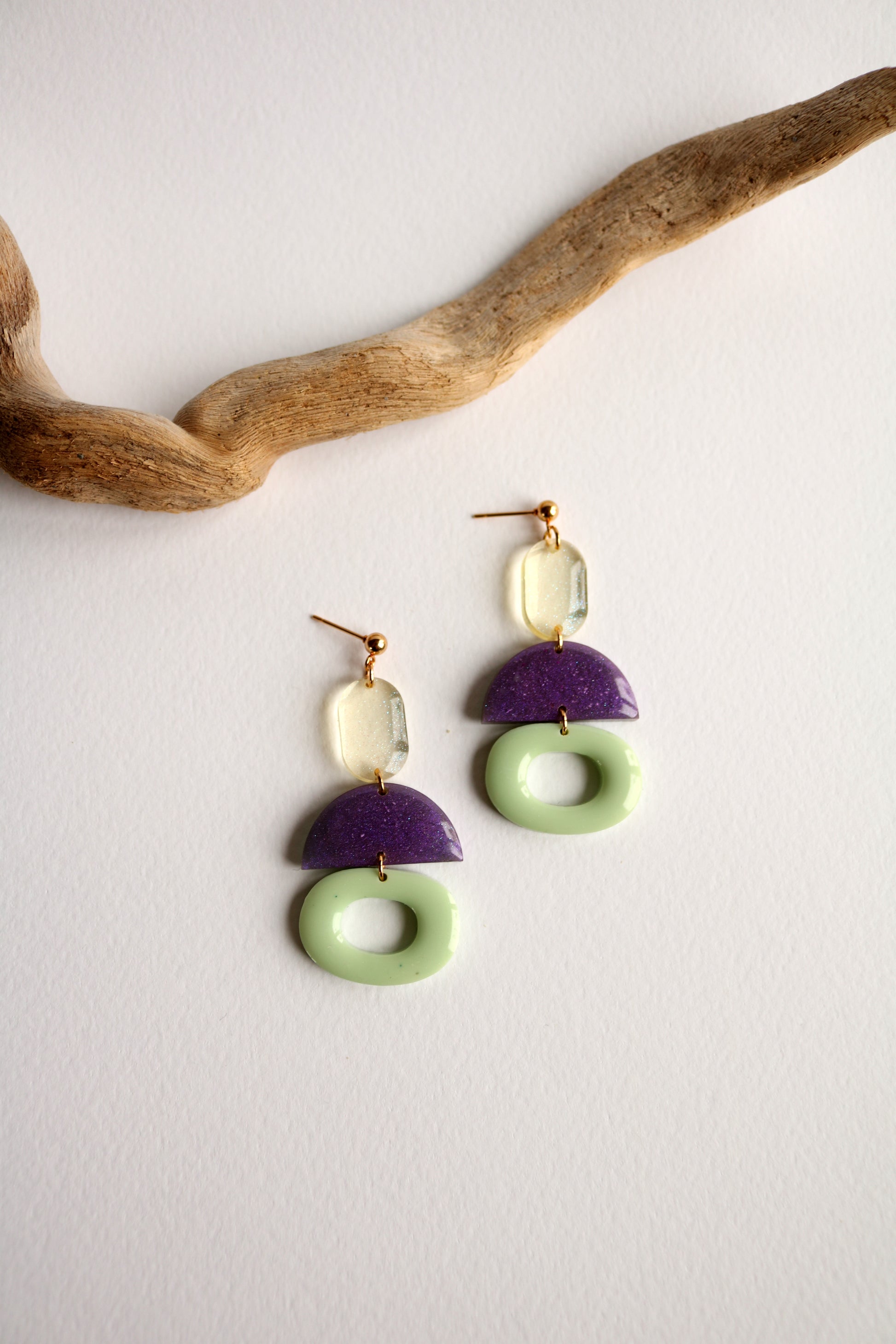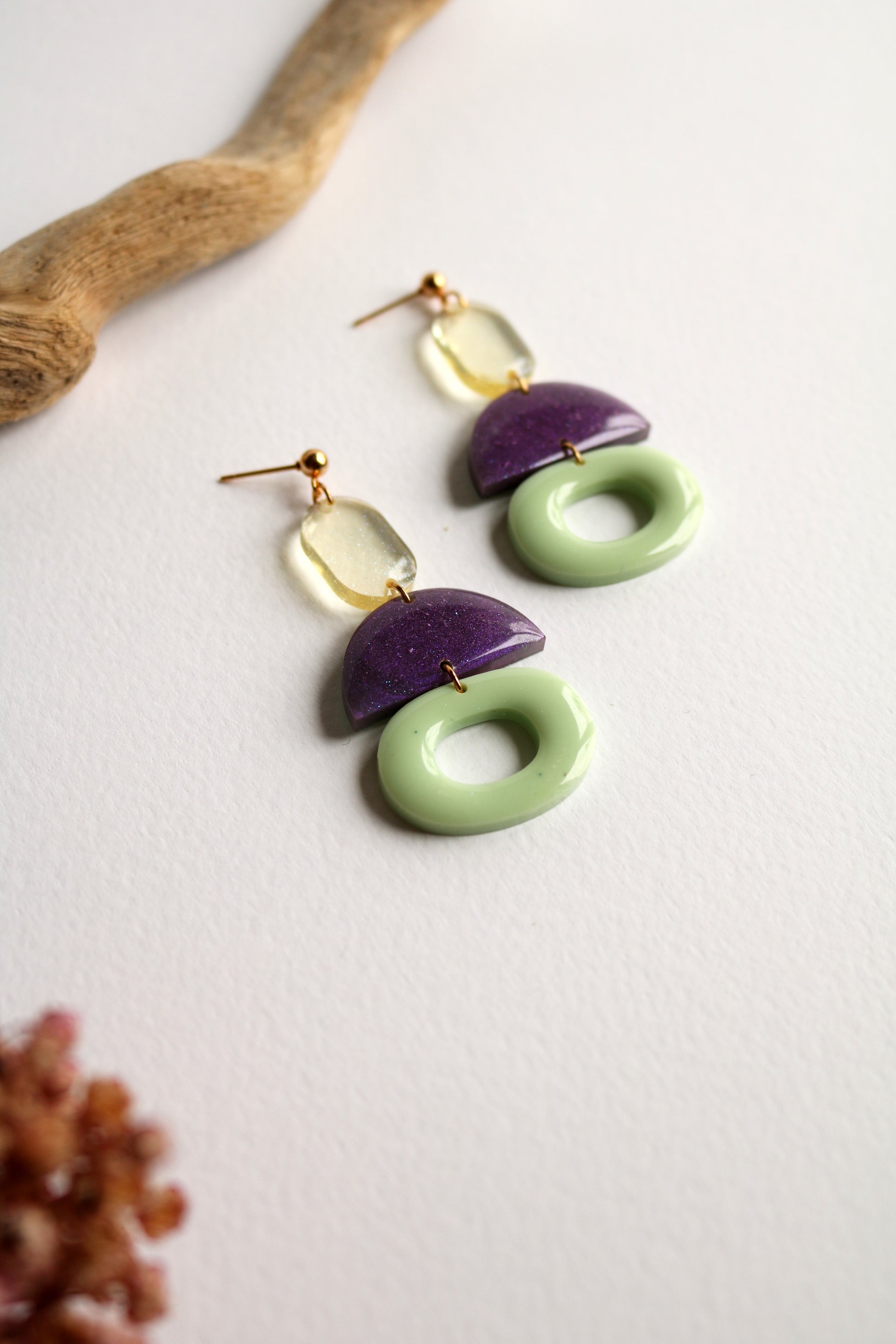 Обеци, изработени от епоксидна смола. Органични форми, нежни цветове. Много леки и удобни. Щифтове от неръждаема стомана. Подходящи за всяко настроение и облекло.