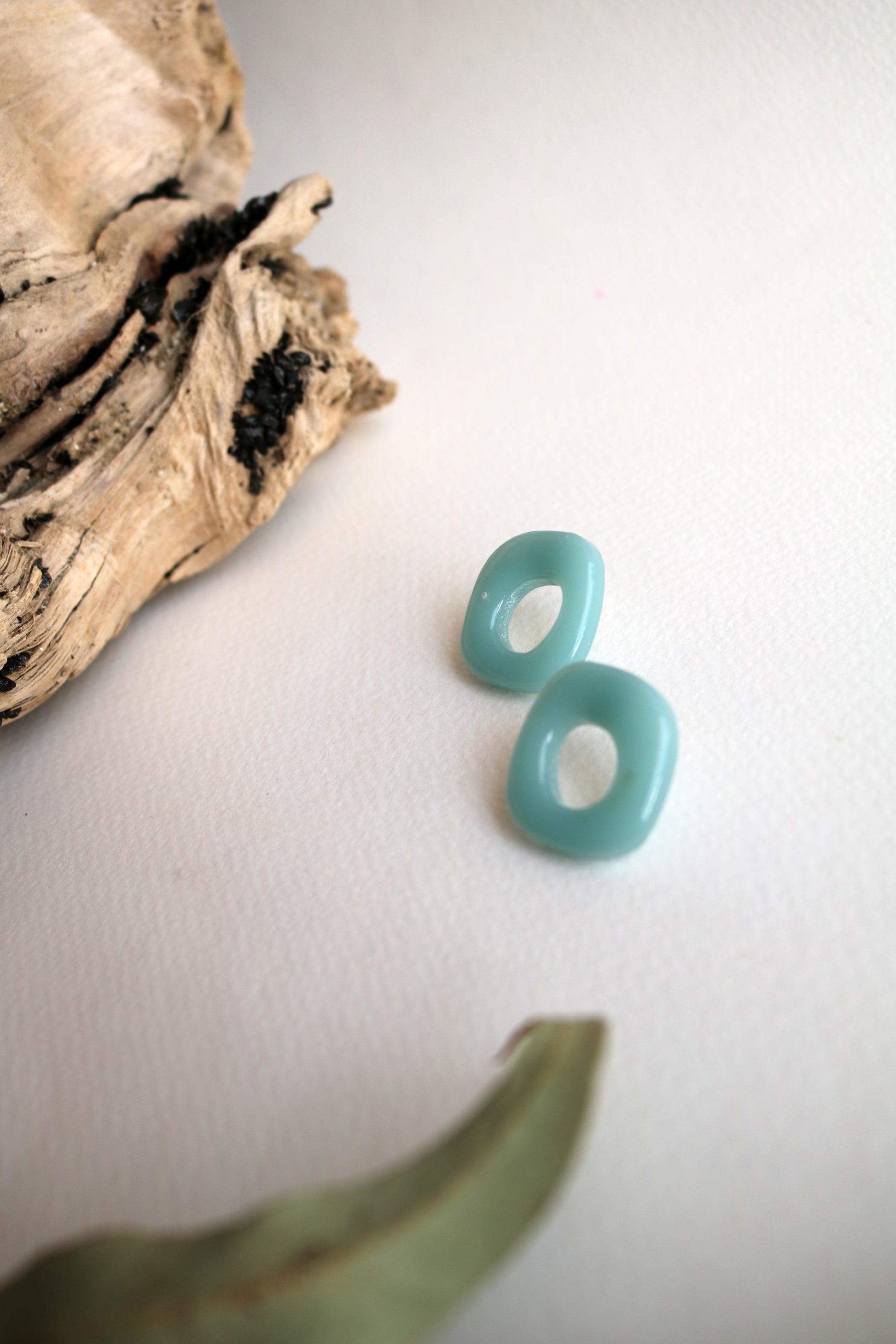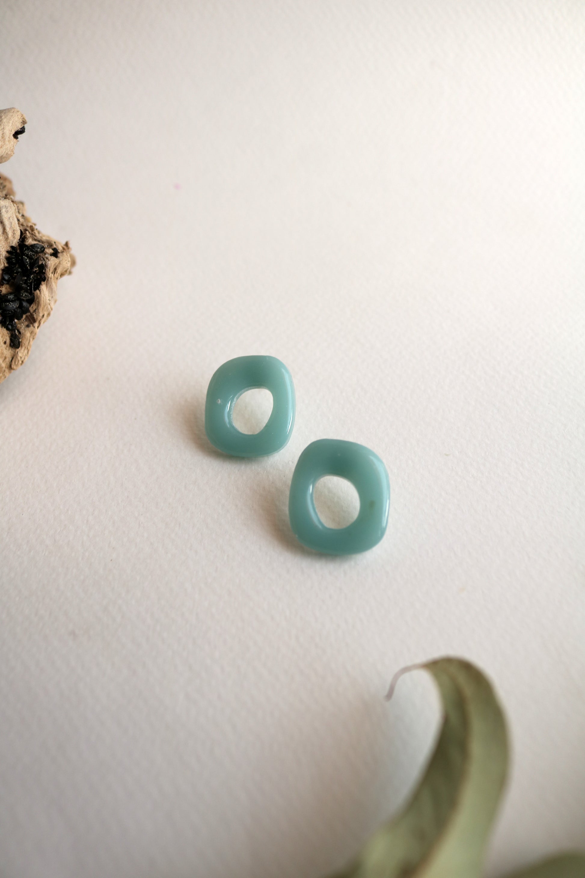 Неправилна форма, вдъхновена от свободата на природата и ръчната изработка. Модел с артистичен и органичен характер. Лек дизайн, който съчетава минимализъм с усещане за движение и индивидуалност. Изработени от епоксидна смола, щифтове от неръждаема стомана и силиконови винтчета.