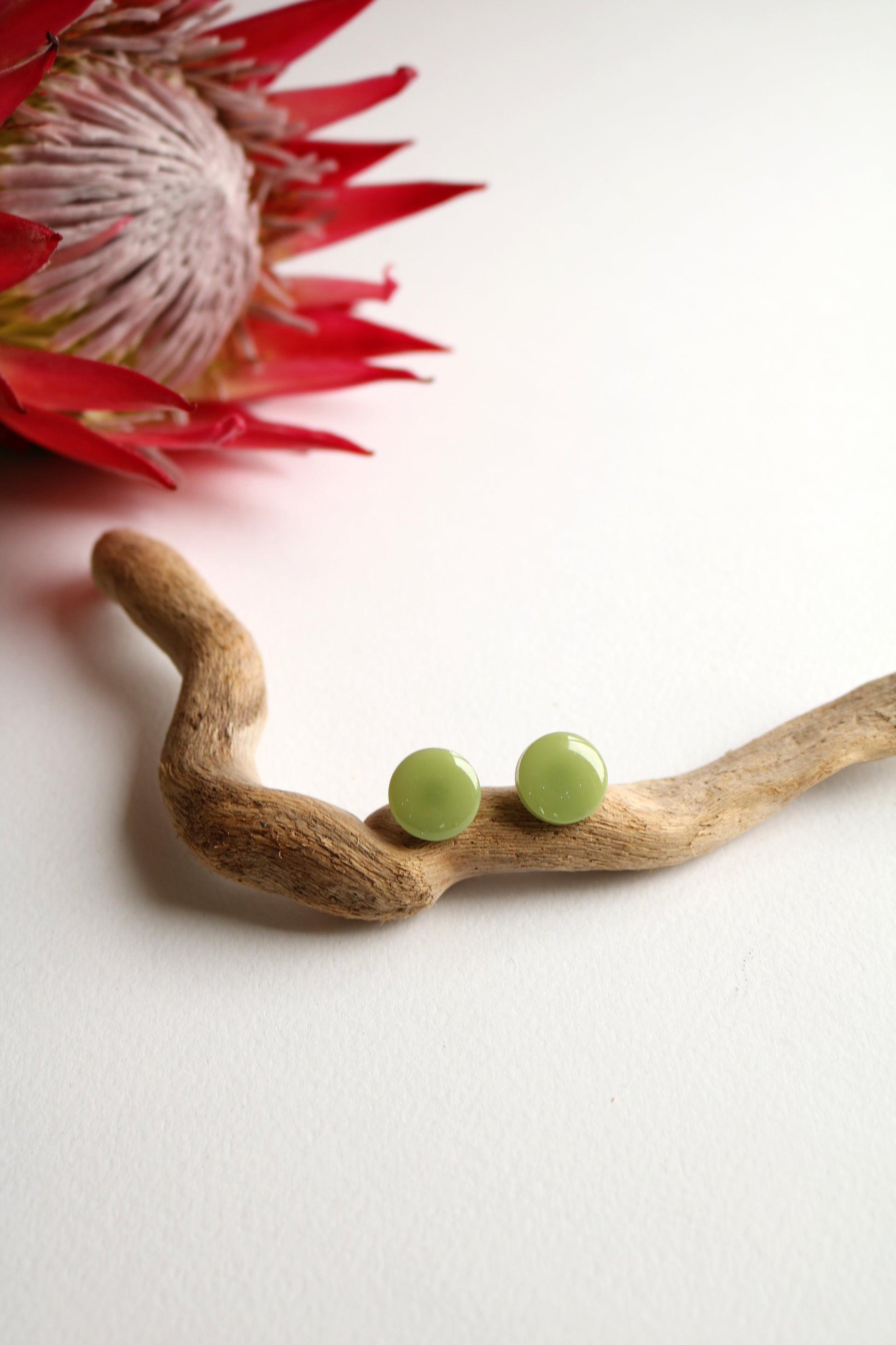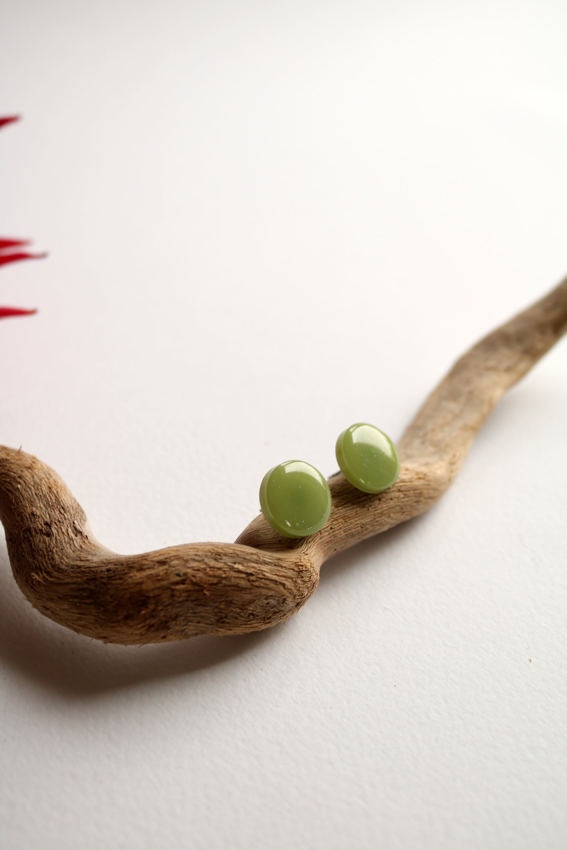 Обеци, изработени от епоксидна смола. Приказен зелен цвят и любима кръгла форма. Щифтове от неръждаема стомана.